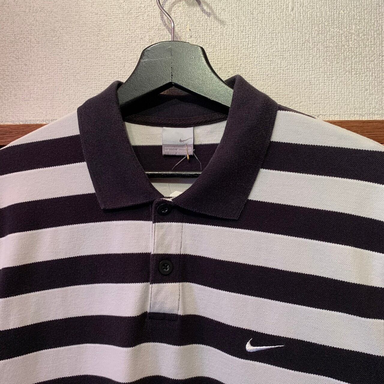“NIKE” 00’s black×white cotton border pattern S/S polo shirt