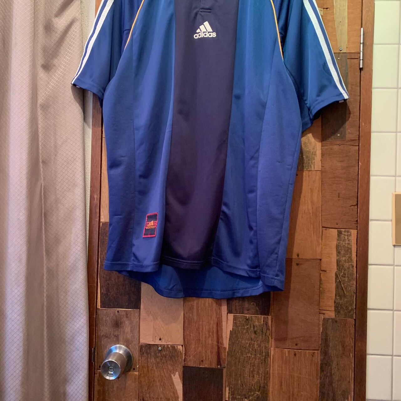 “adidas” 90’s~00’s blue×navy×white polyester line&logo S/S polo shirt