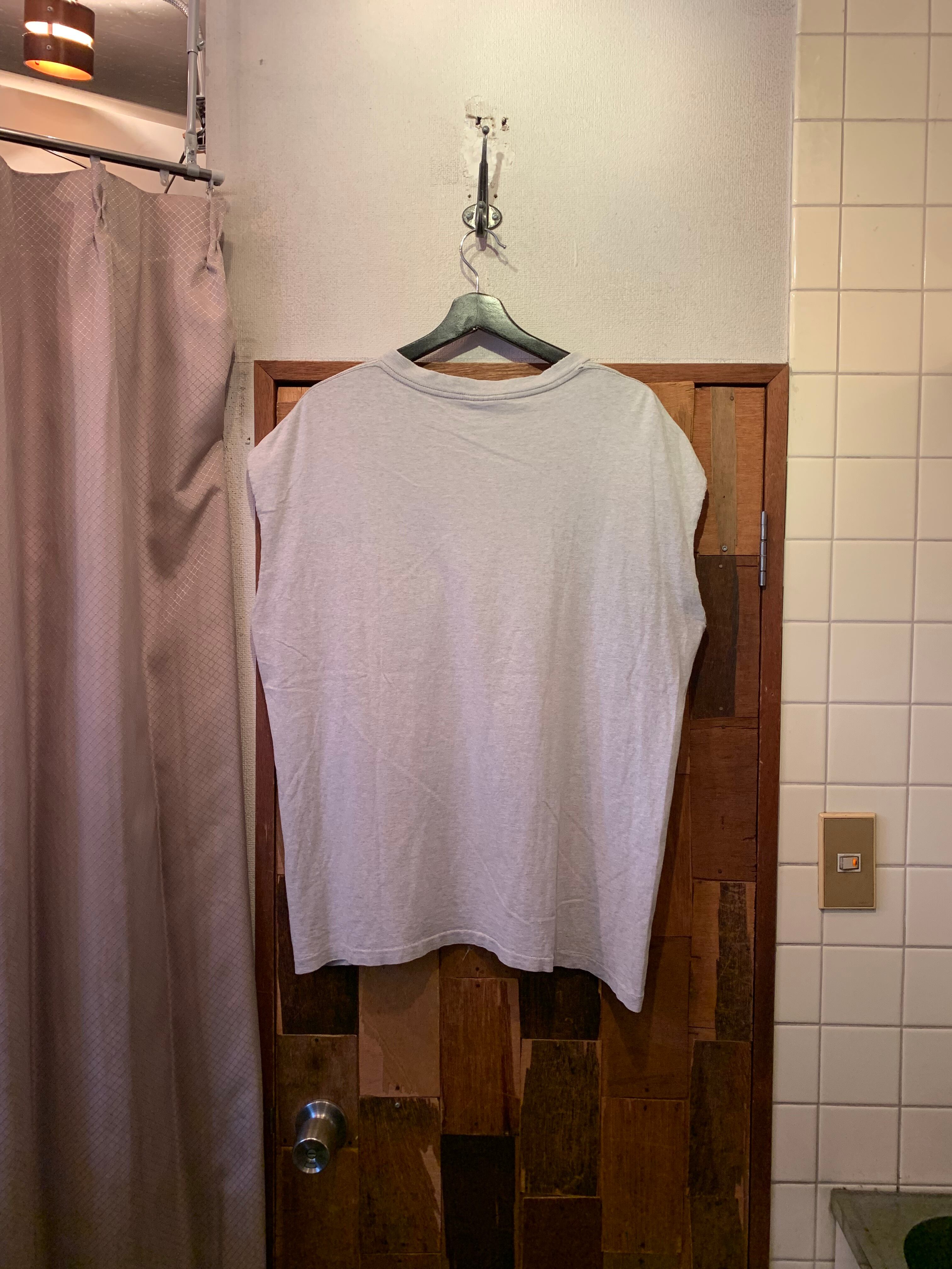 “BANANA REPUBLIC” 90’s gray cotton printed cut-off N/S Tee made in USA