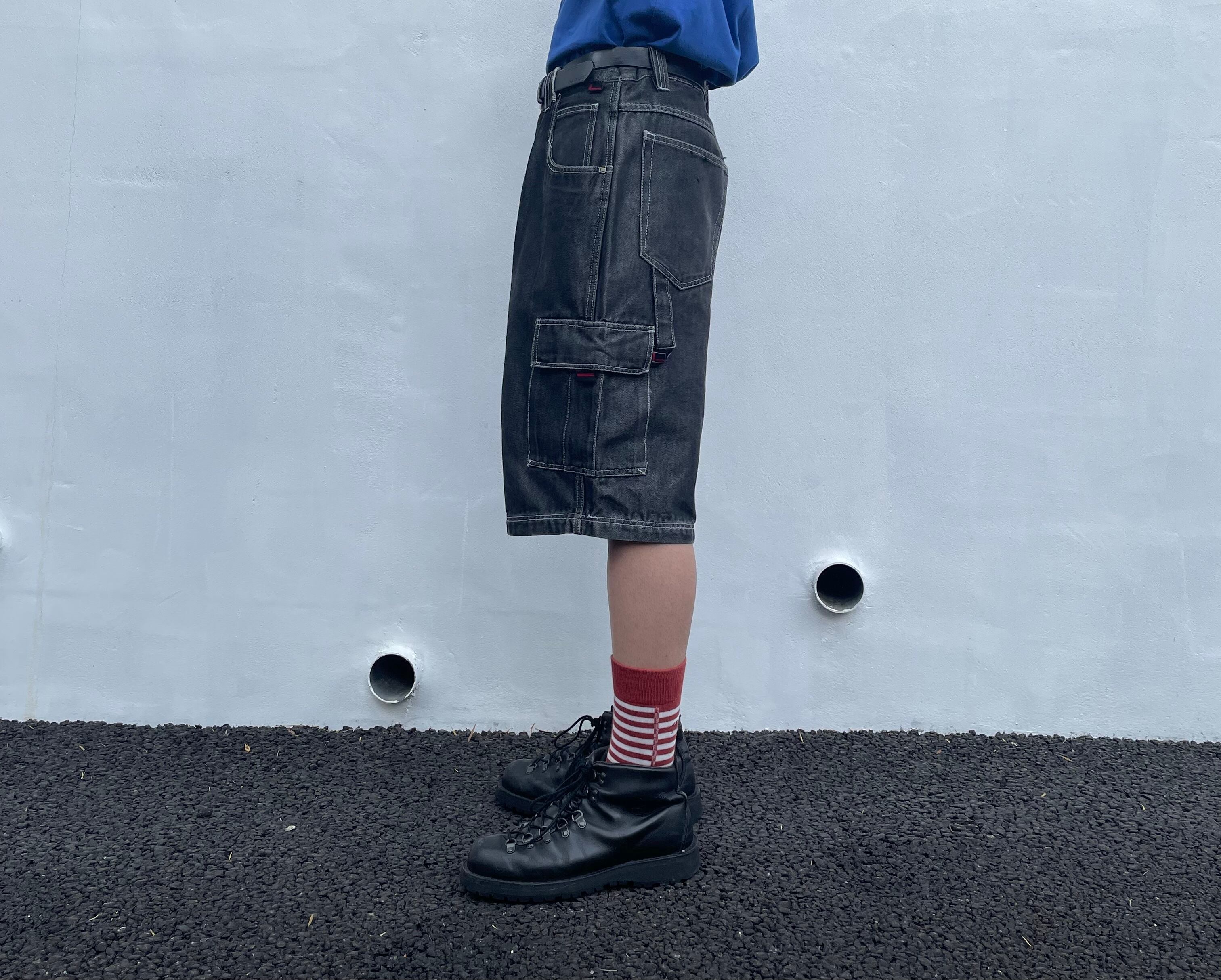 “FUBU” charcoal black cotton/poly denim cargo shorts