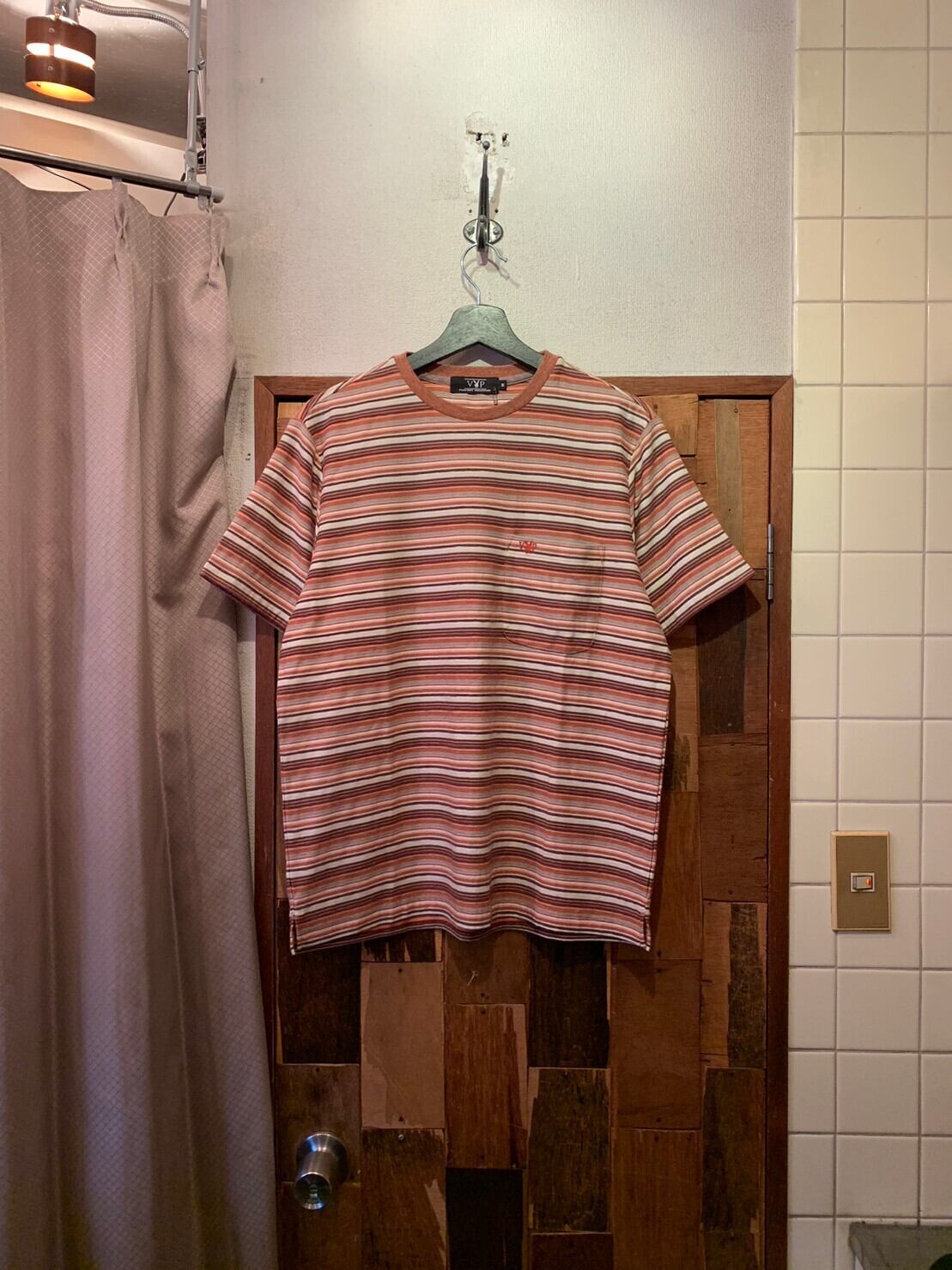 “PLAY BOY” orange×brown×white border pattern S/S Tee