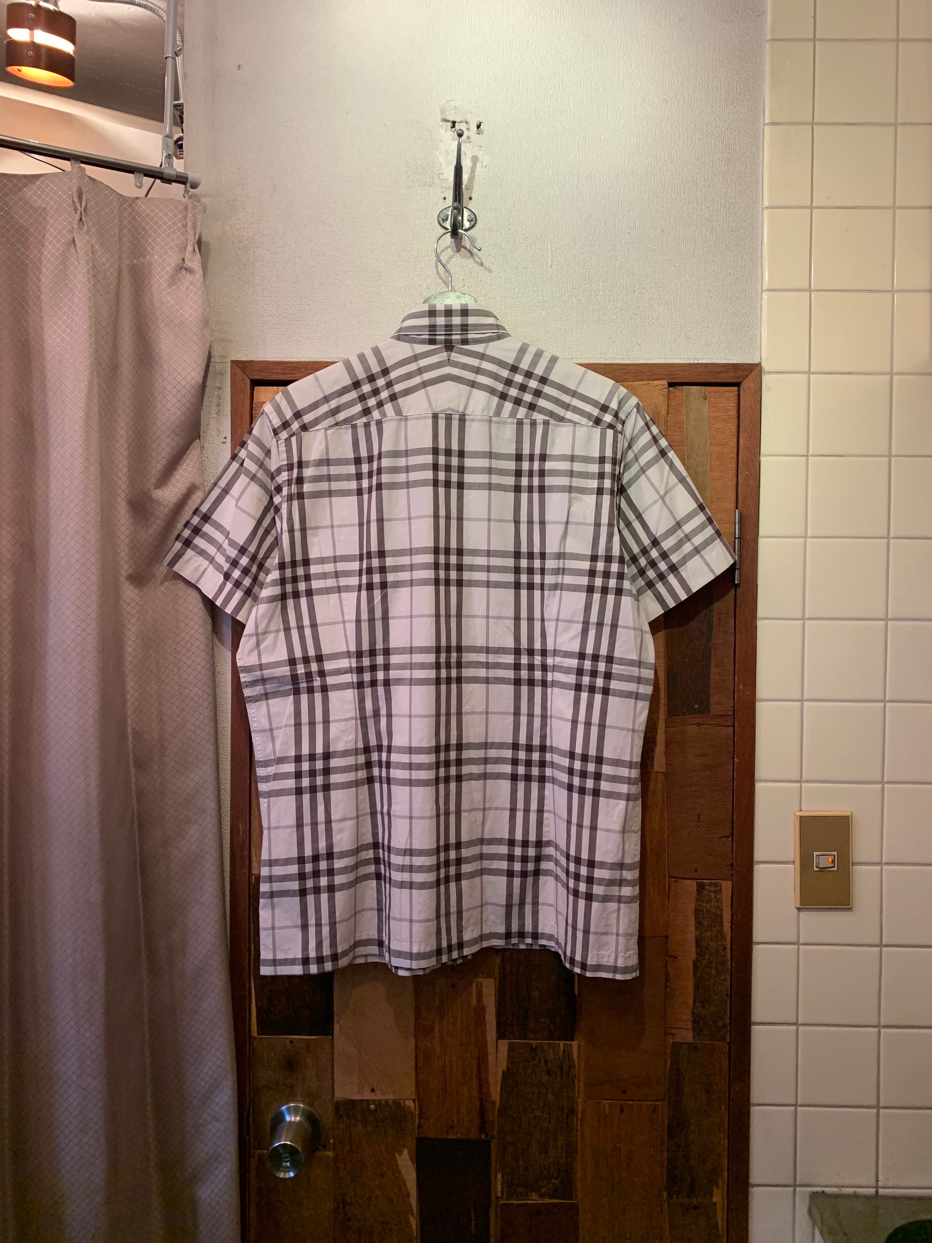 “BURBERRY” white×gray cotton check pattern S/S BD shirt