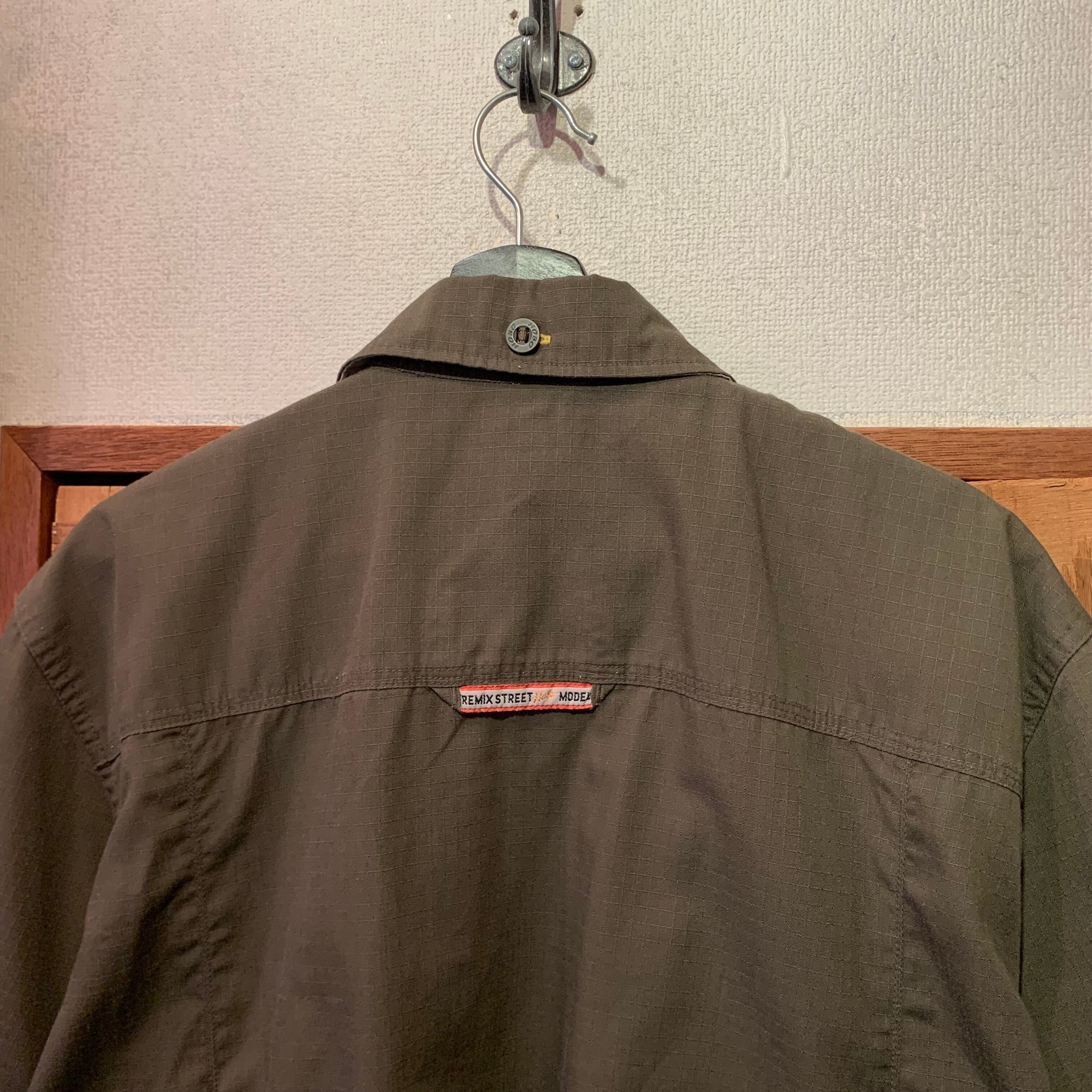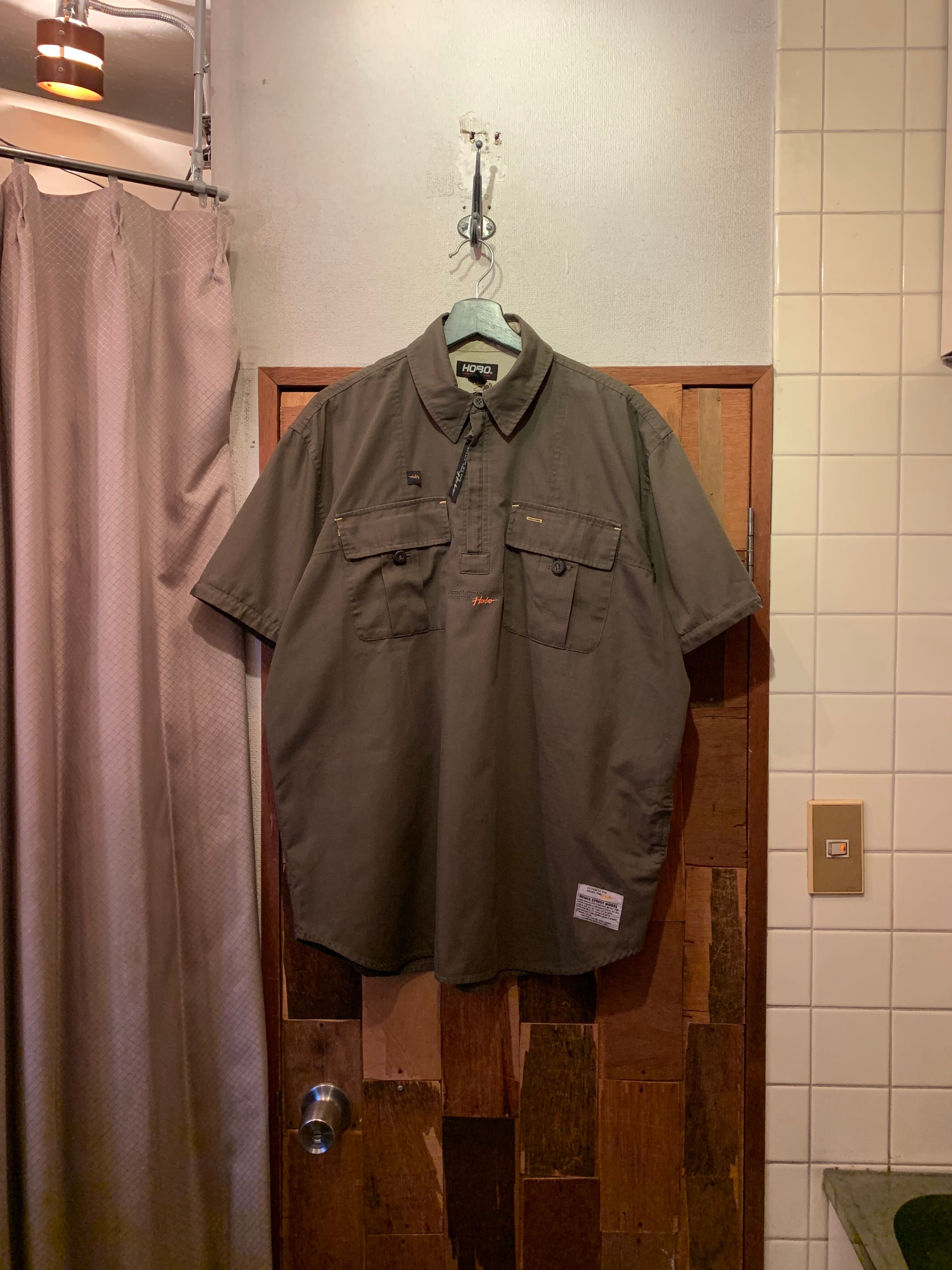 “HOBO” khaki poly/cotton design S/S half-zip shirt