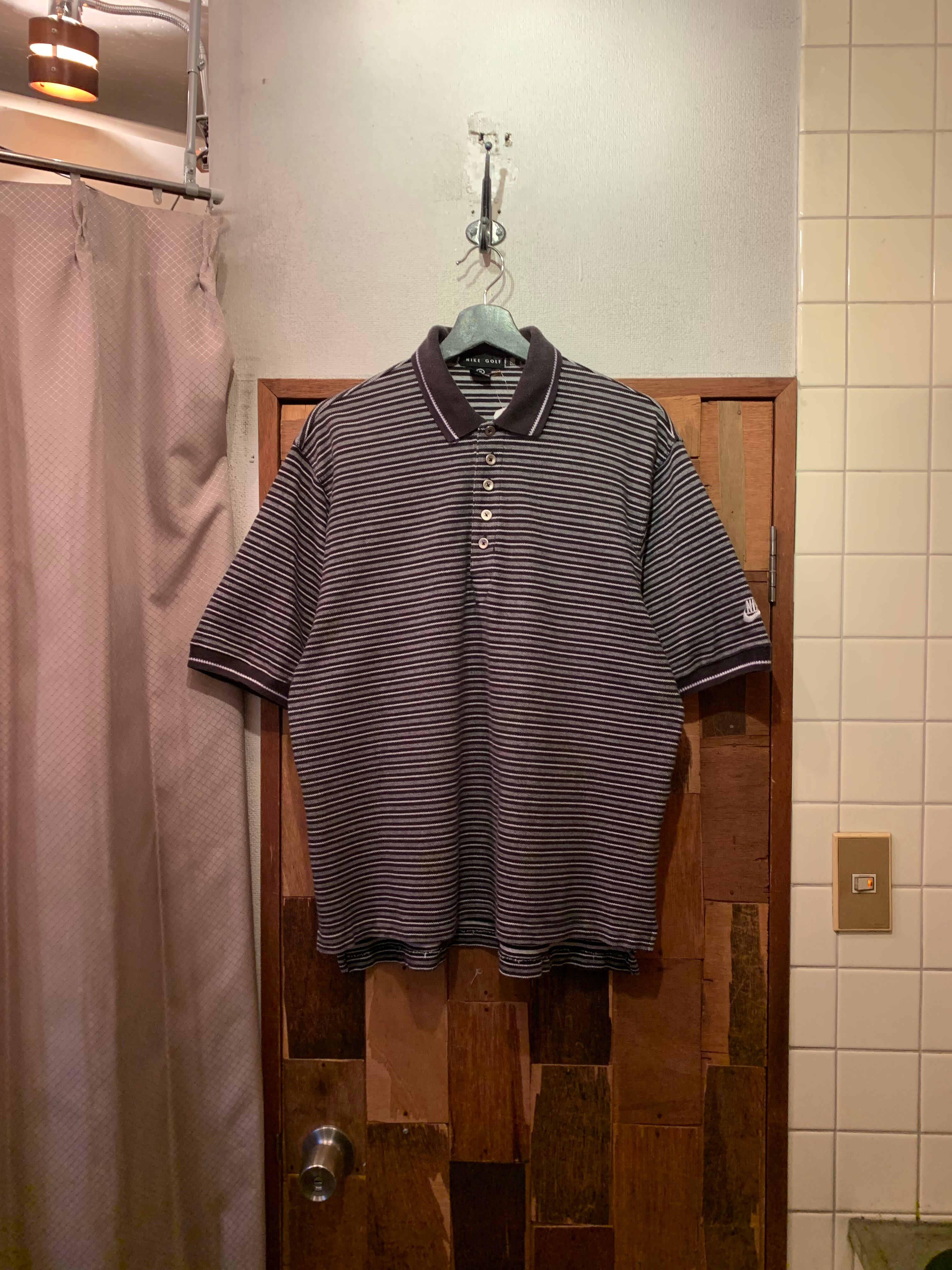 “NIKE GOLF” 90’s~00’s black base cotton border pattern S/S polo shirt