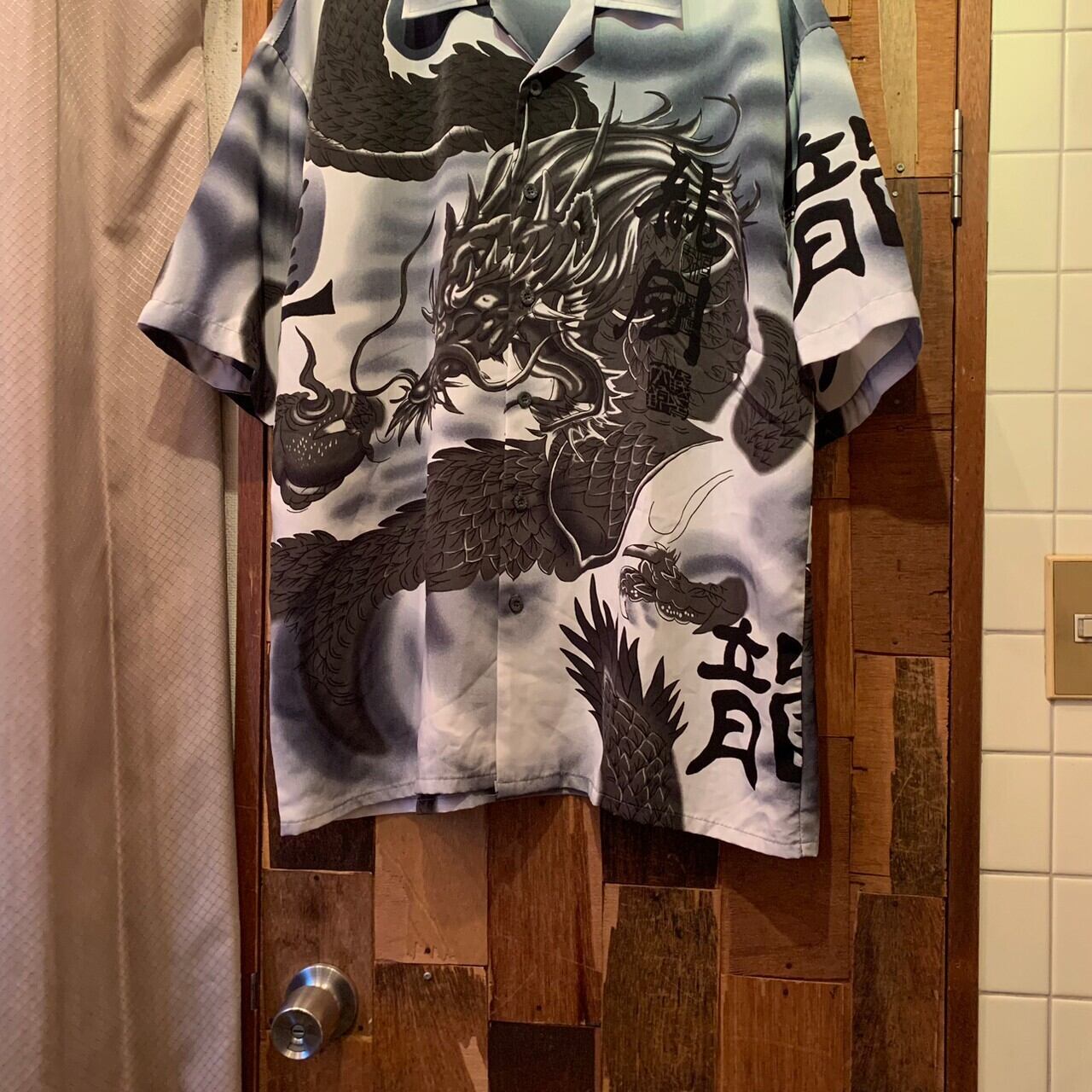 “rue 21” black×gray polyester dragon design S/S open-collar shirt