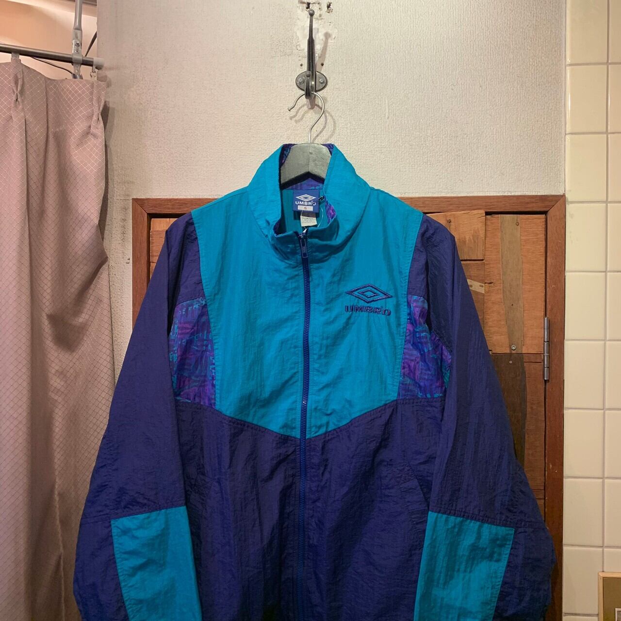 “UMBRO” 90’s green×purple nylon design zip-up jacket
