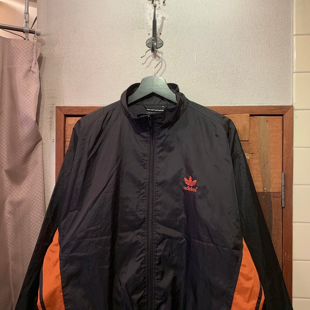 “adidas” 90’s black×orange nylon logo&line design jacket