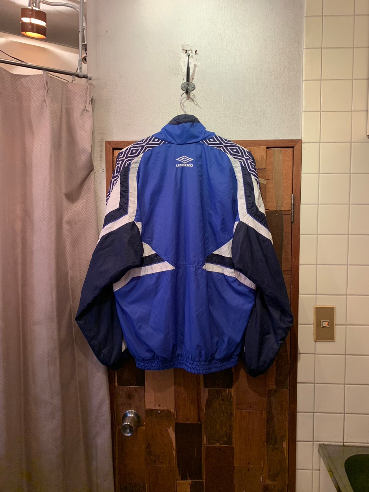 “UMBRO” 90’s blue×white×navy polyester design zip-up blouson