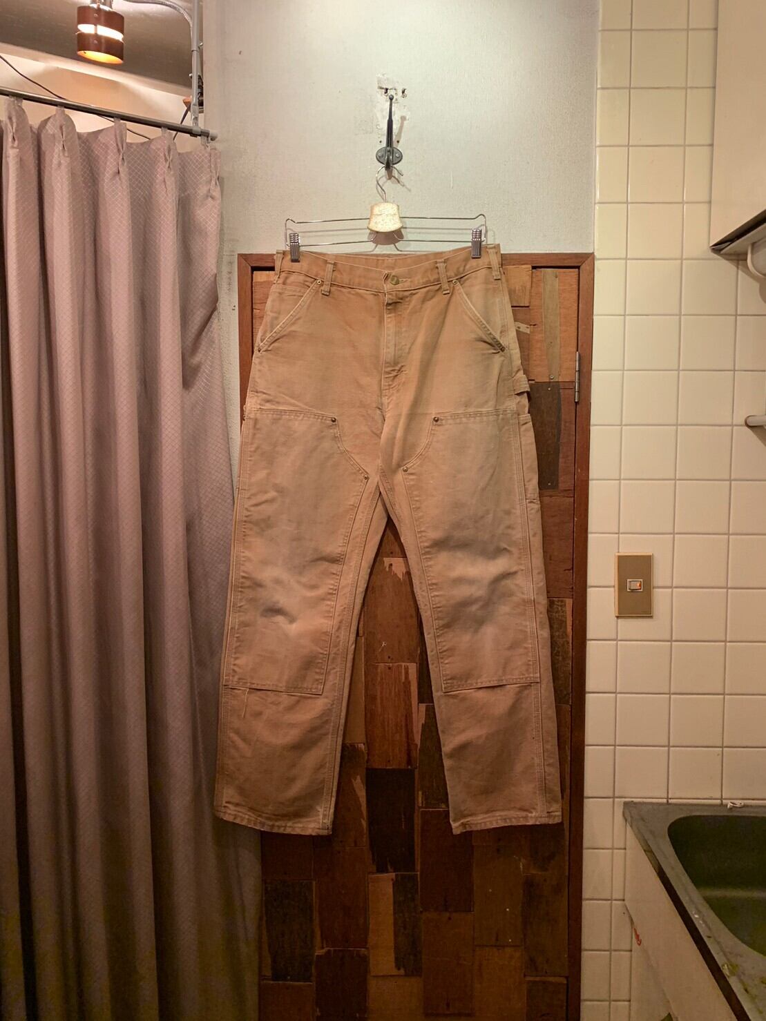 “carhartt” 90’s light brown cotton double-knee duck pants made in USA
