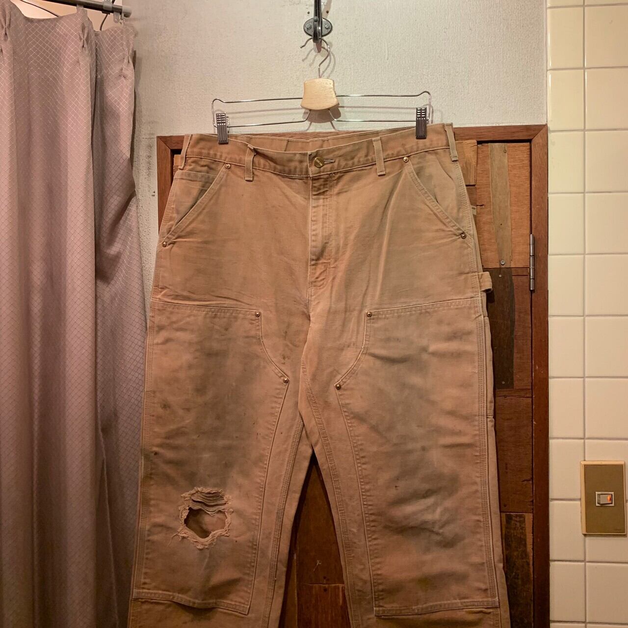 “carhartt” 90’s light brown cotton double-knee duck pants made in USA