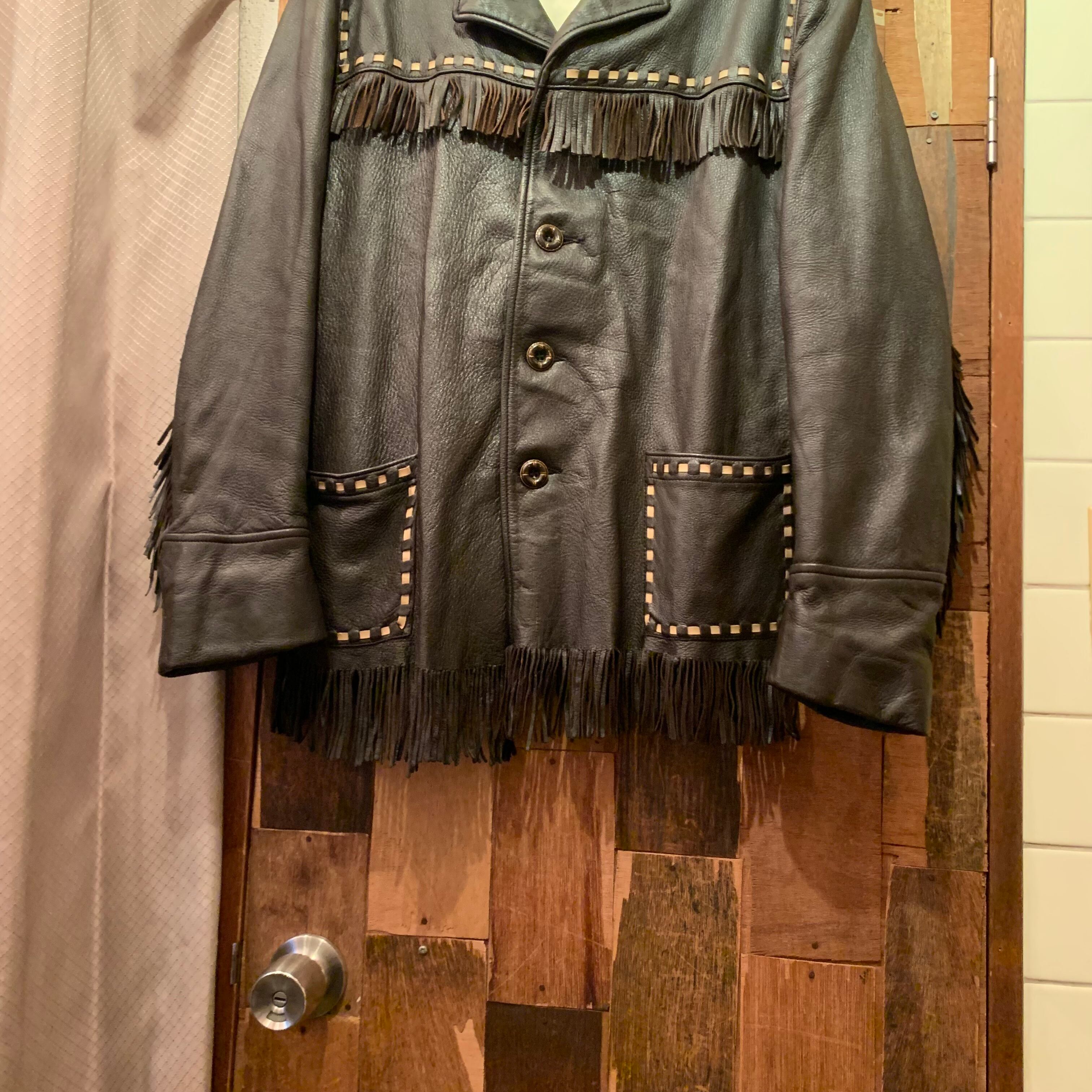 “Mid Western” 70’s~80’s dark brown fringe leather jacket