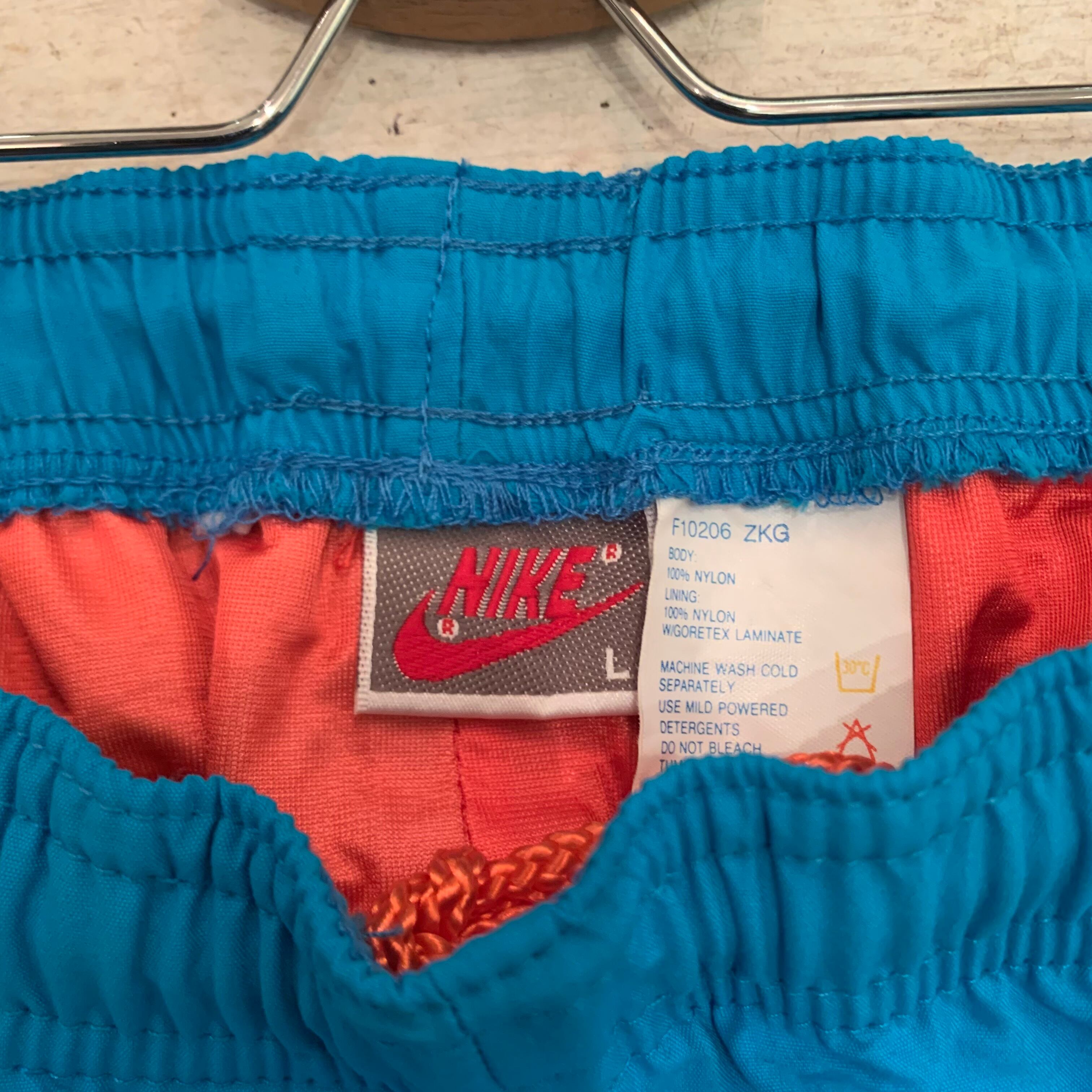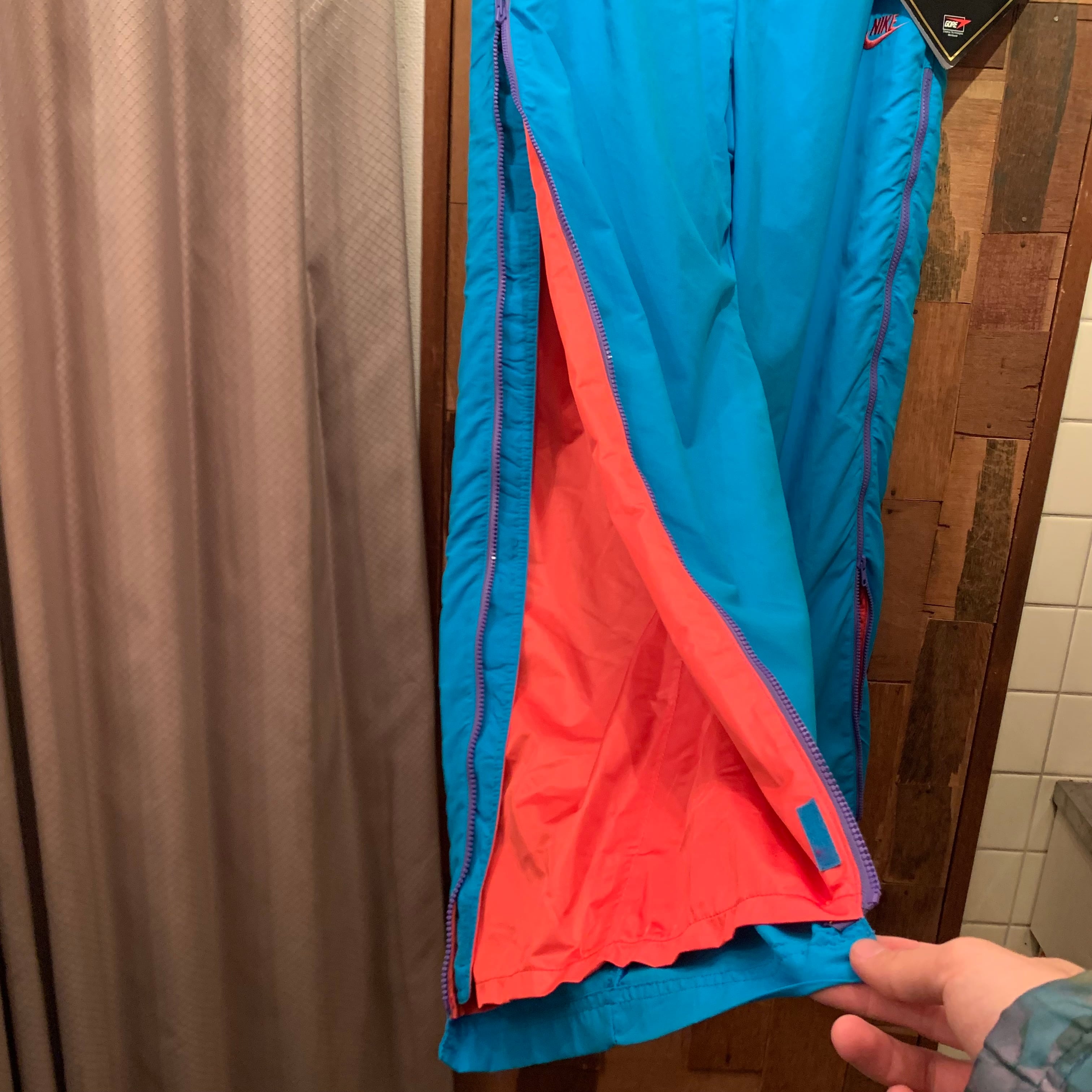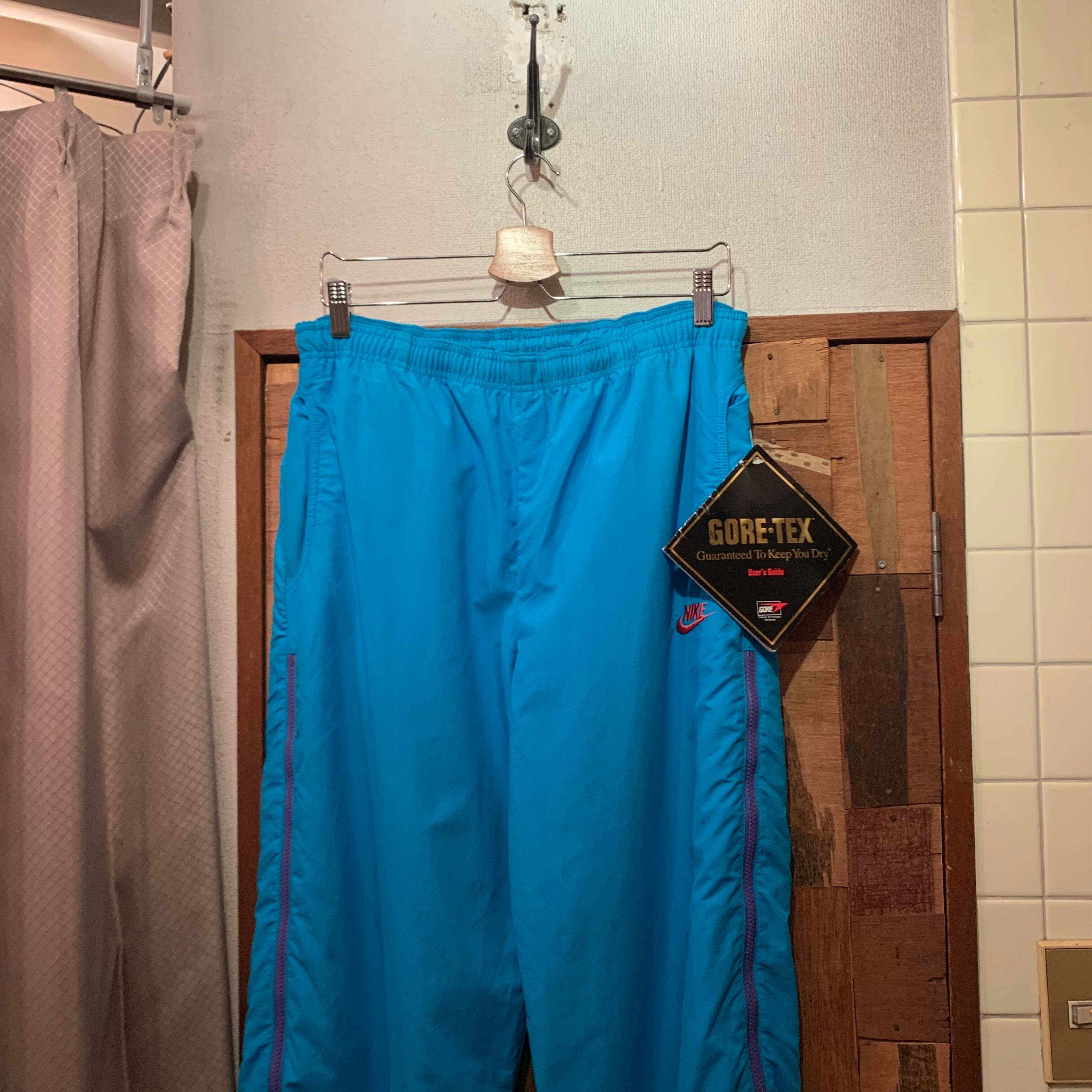 “NIKE” 90’s dead stock light blue nylon side zip pants