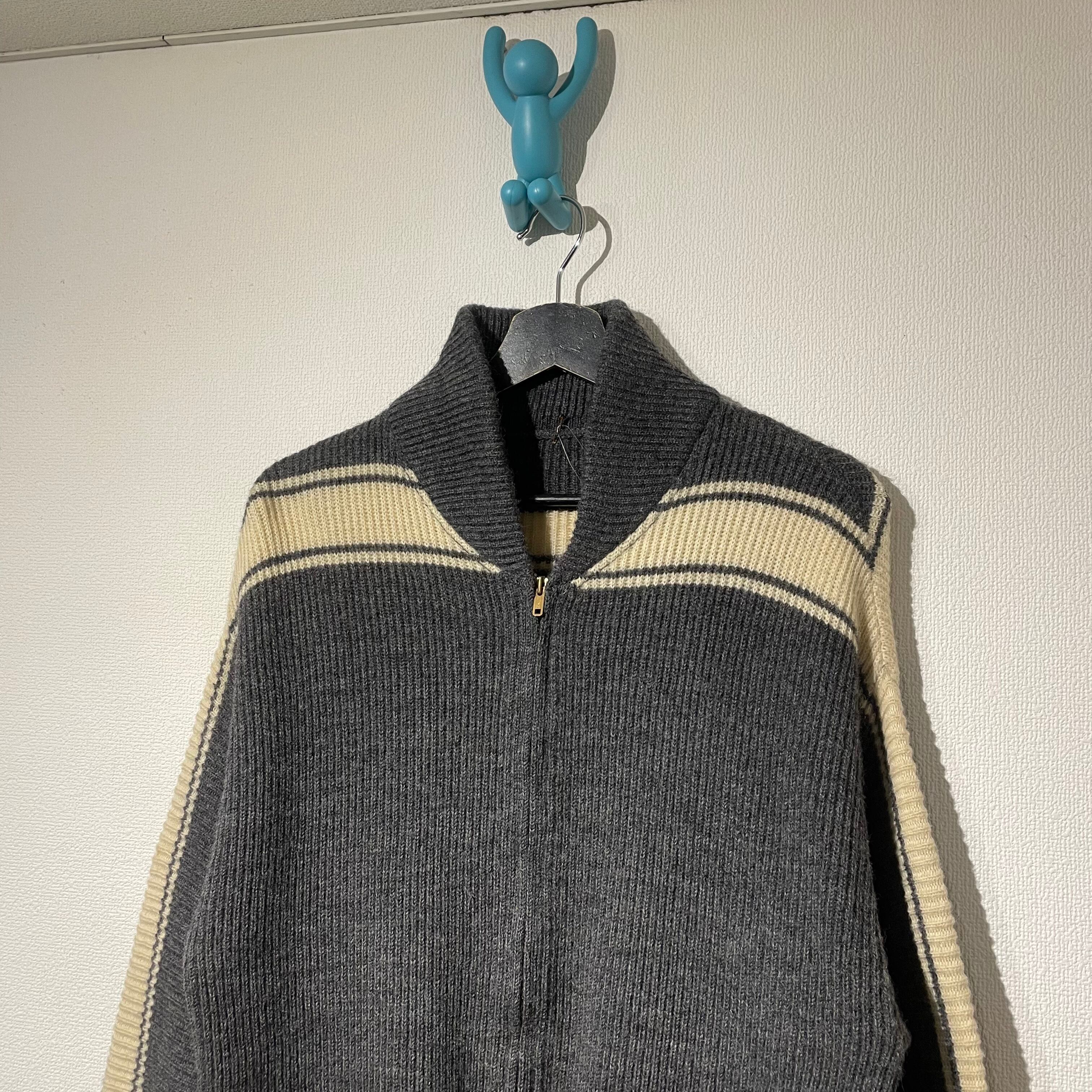 “brand unknown” 60’s gray×white design zip-up cardigan