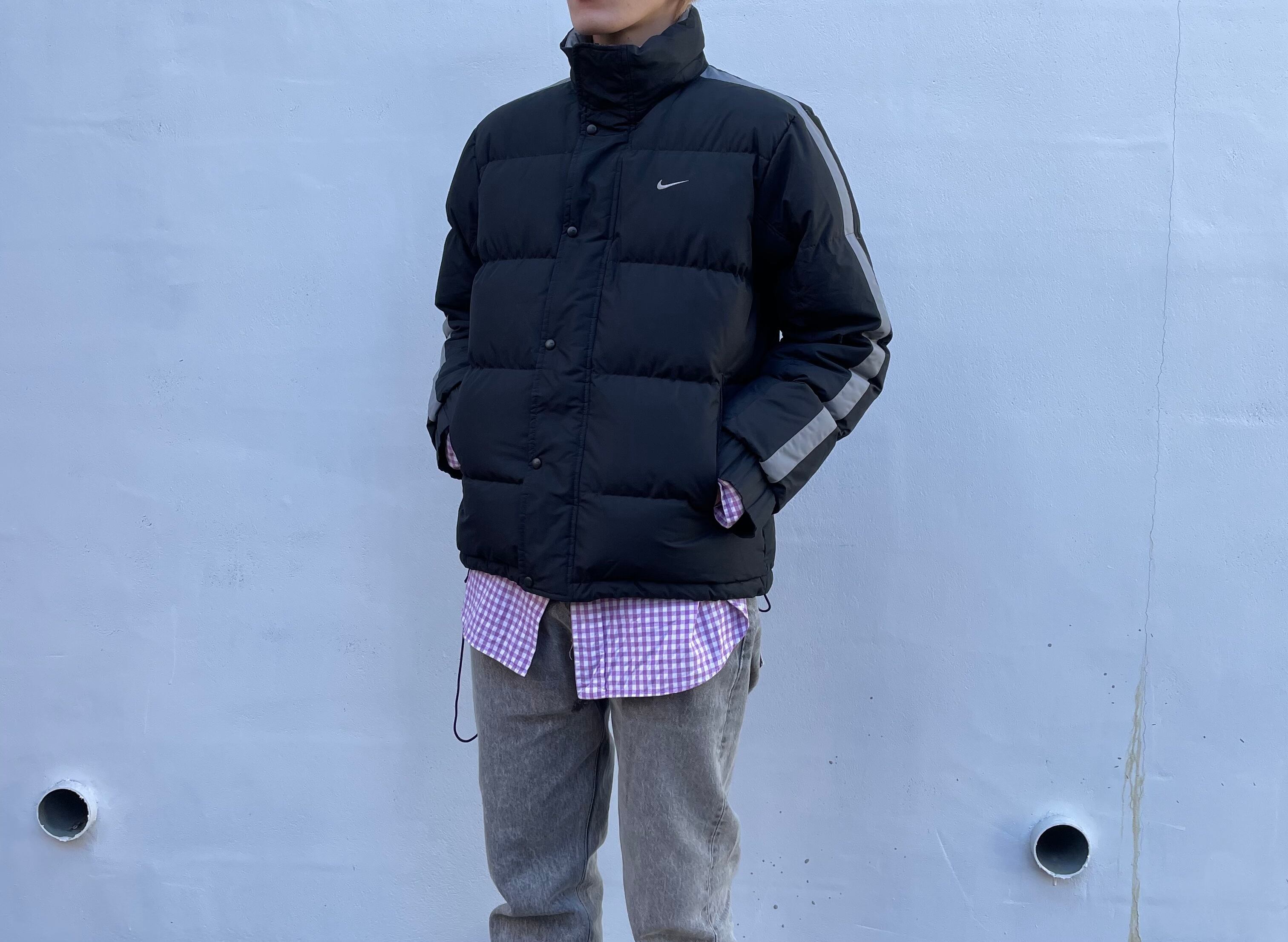 “NIKE” 00’s black×gray poly/nylon zip-up down jacket