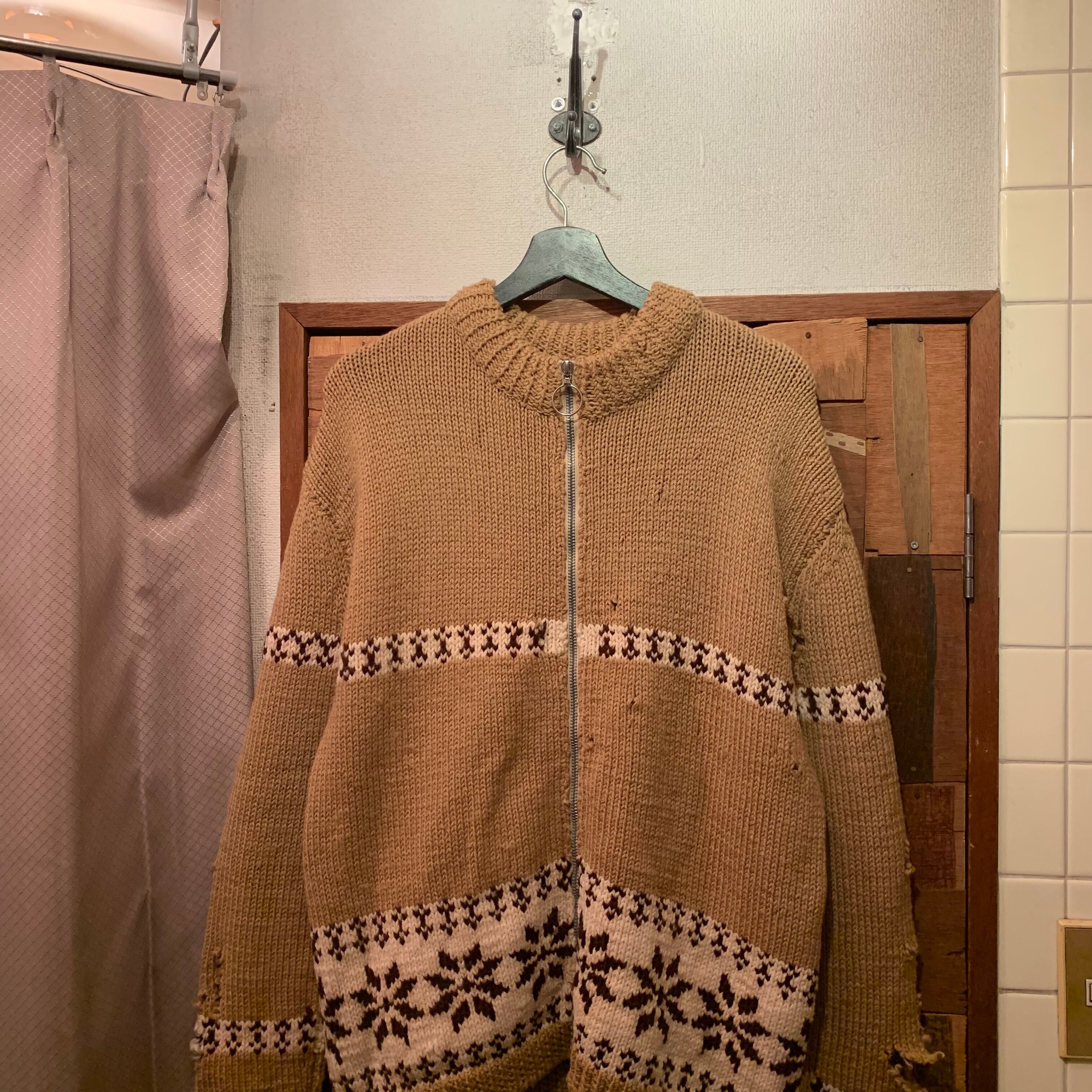 “Euro vintage” 70’s beige zip-up knit good boro!!