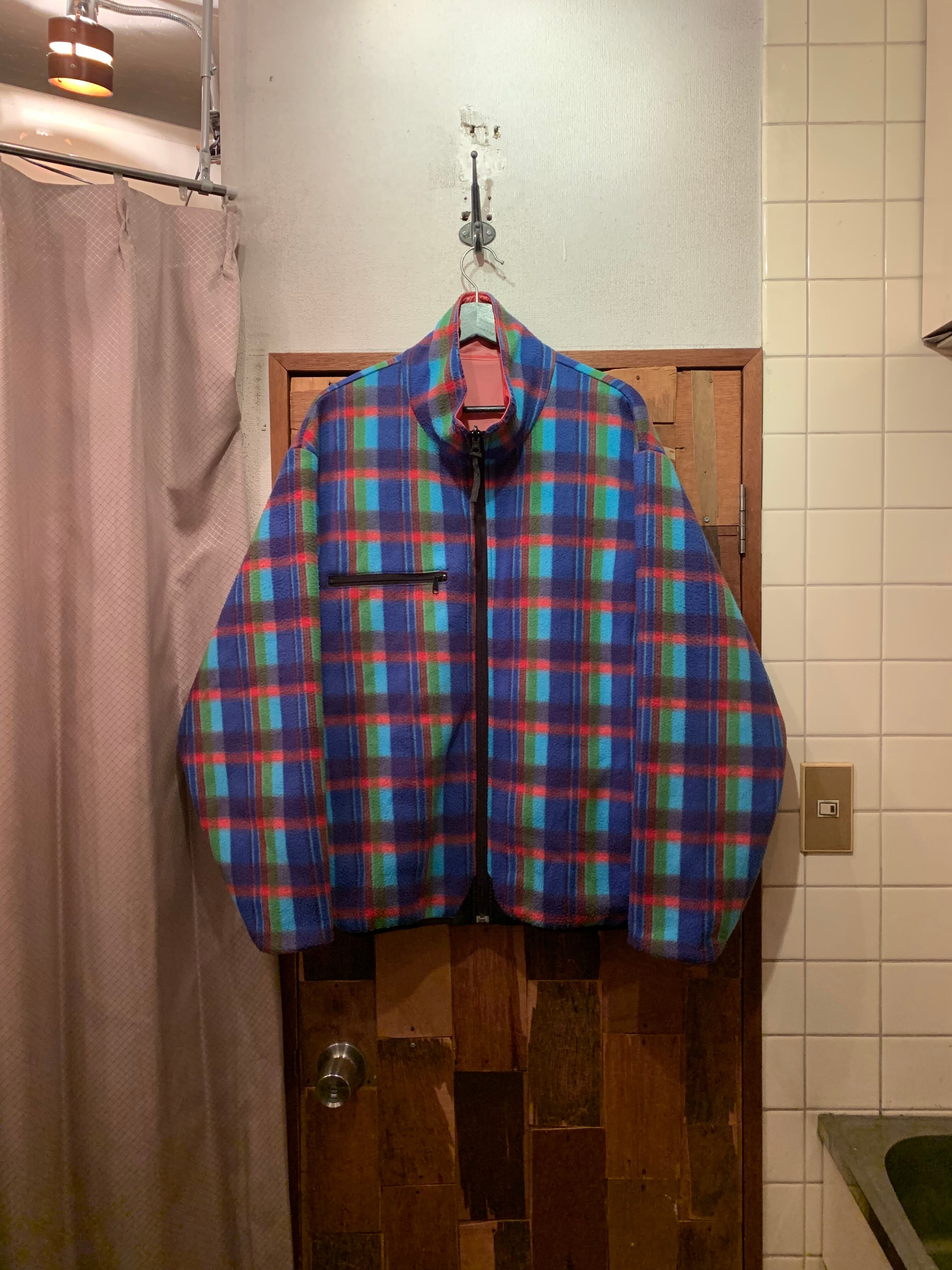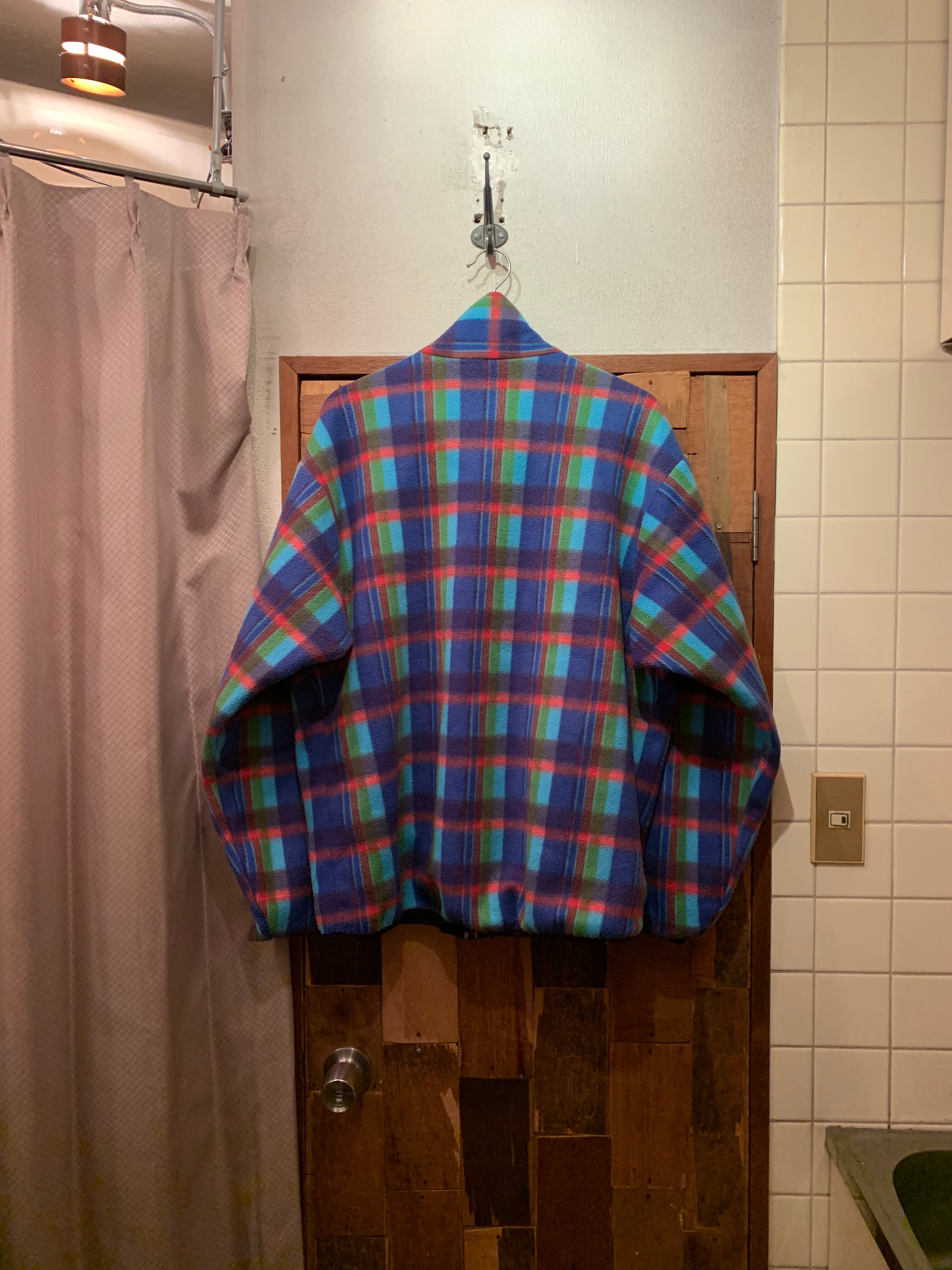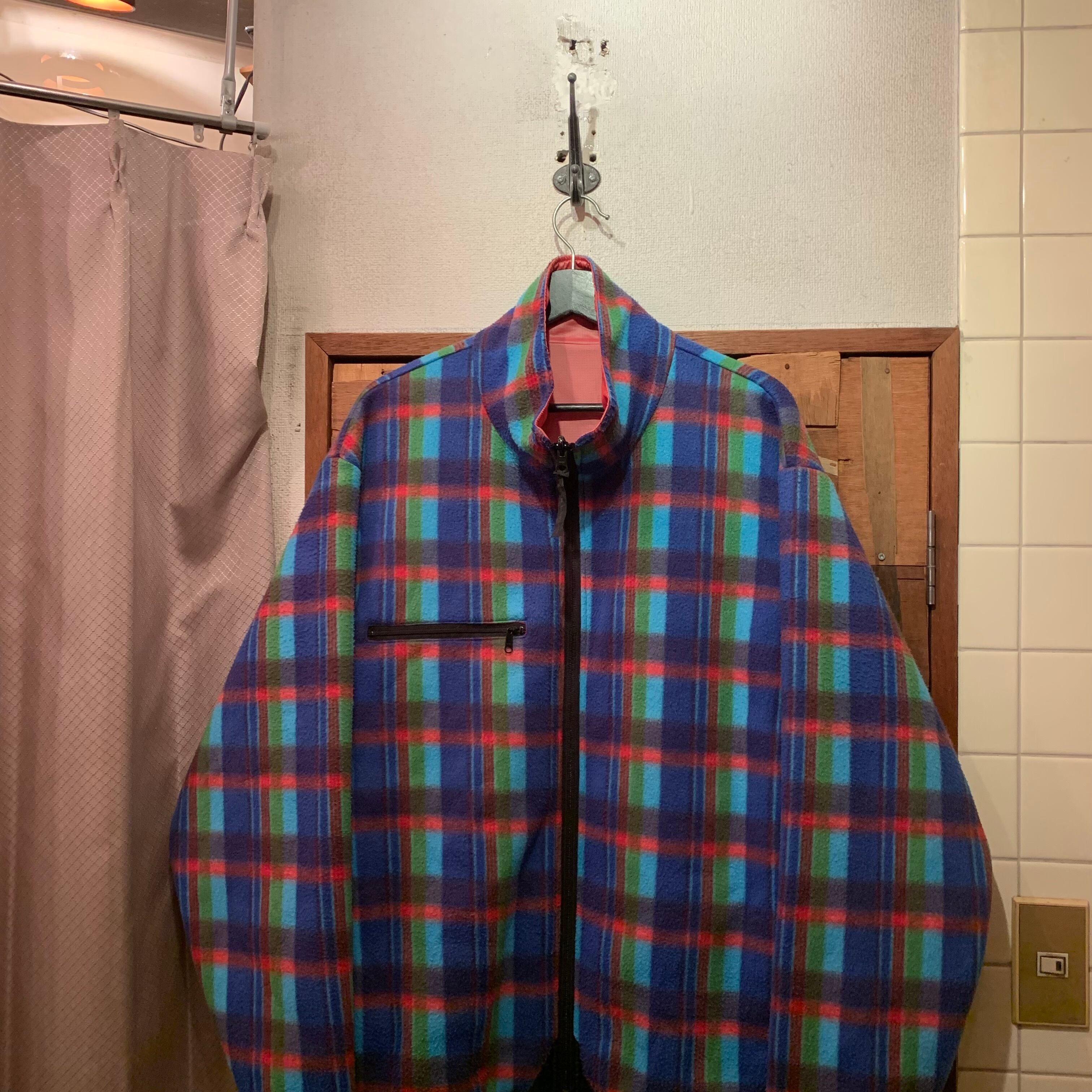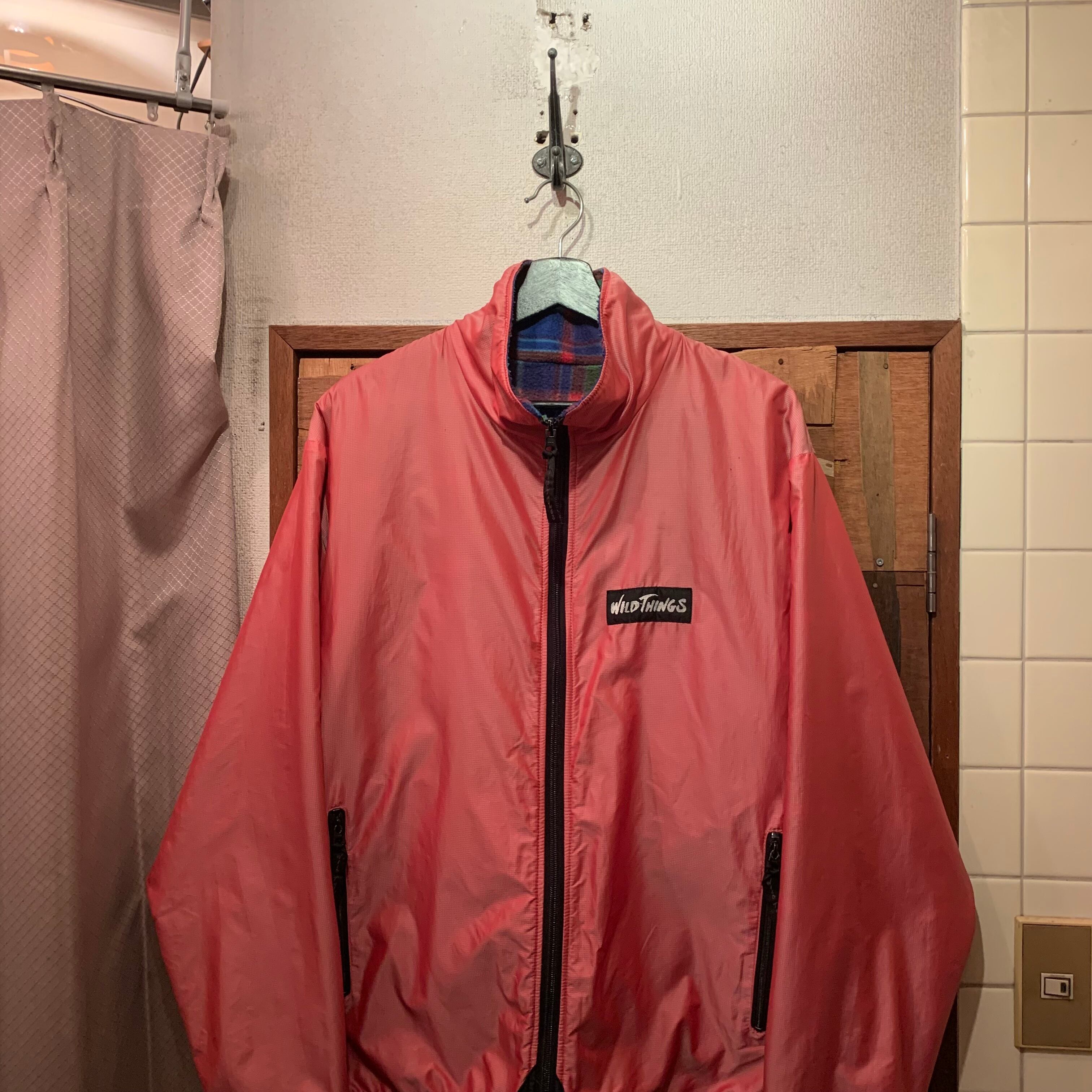 “WILDTHINGS” pink×multi color check fleece polyester reversible jacket made in USA