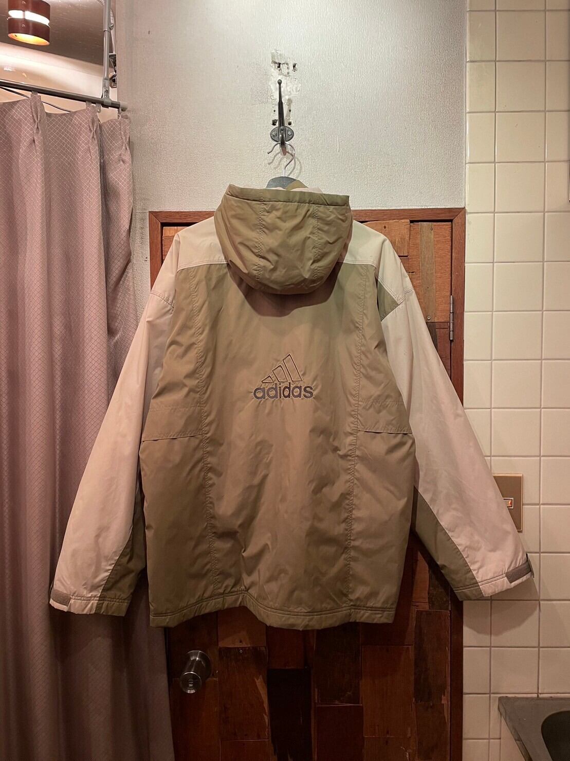 “adidas” 90’s khaki×beige polyester zip-up hooded jacket