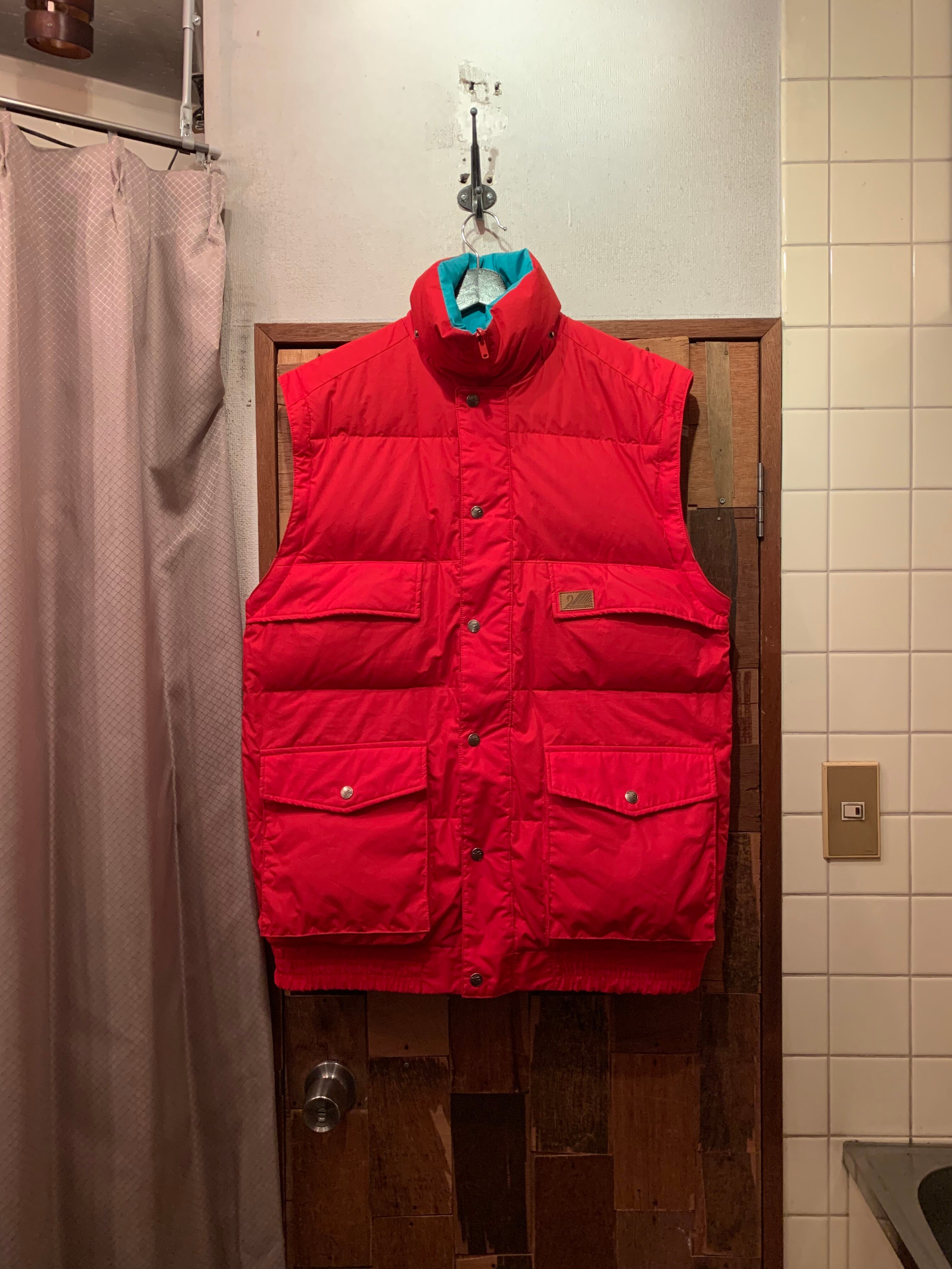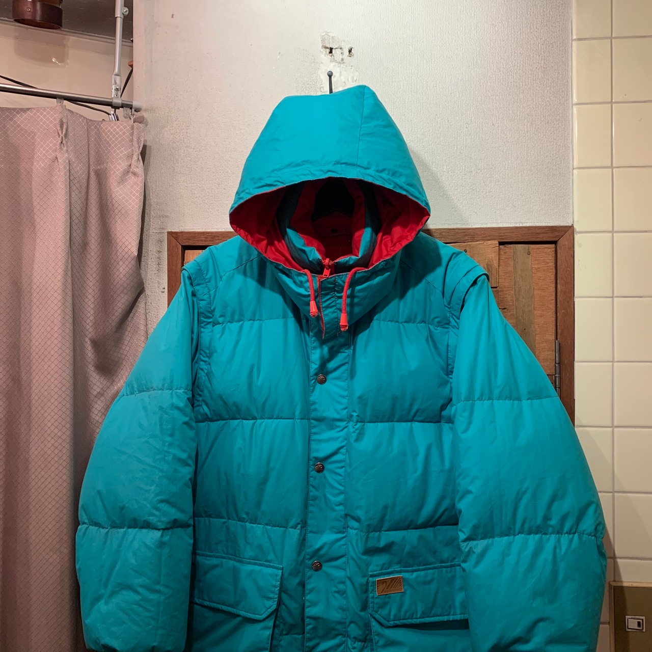 “GENUINE DOWN” turquoise blue×red poly/cotton detachable design hooded down jacket&vest