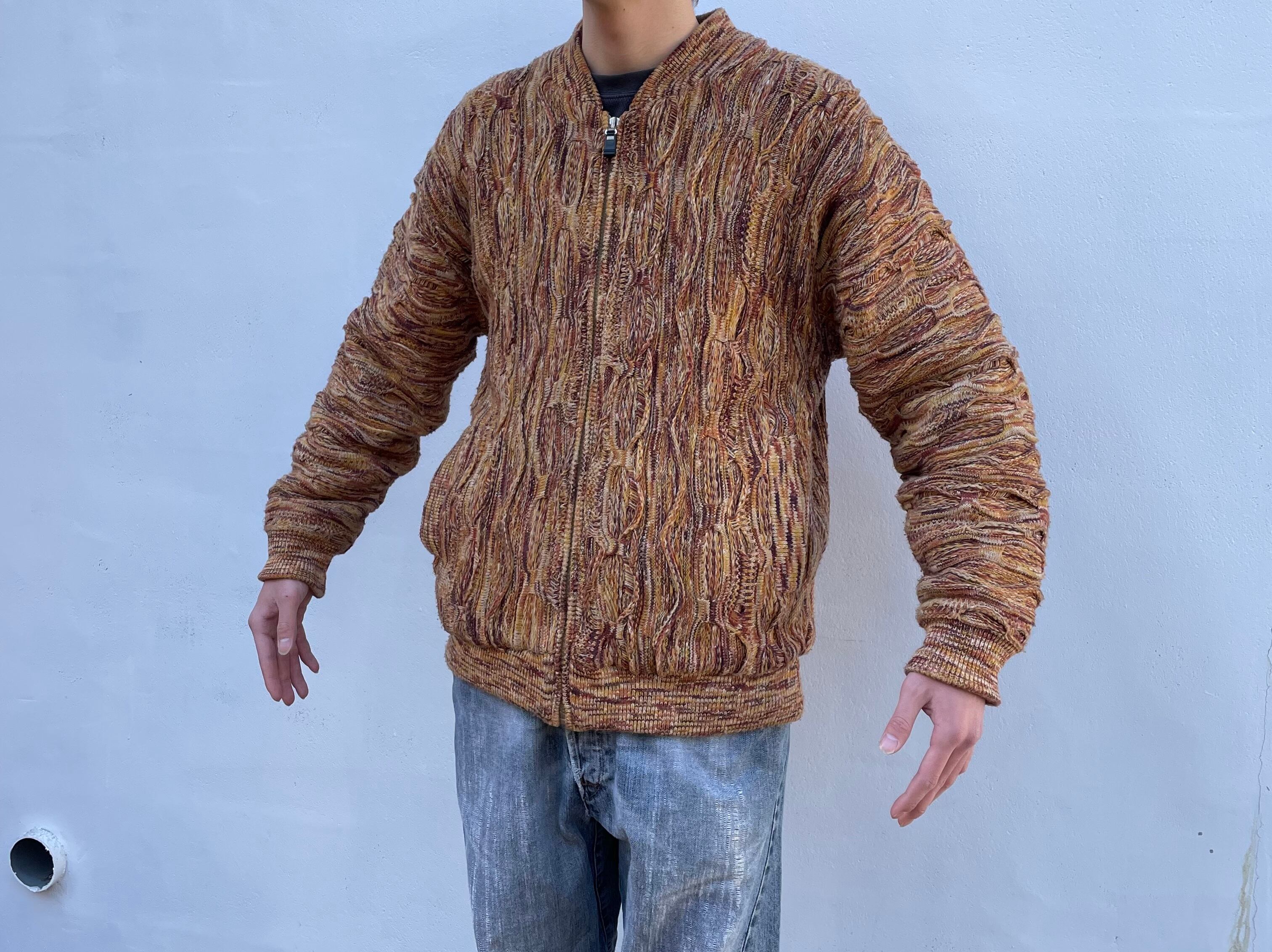 “CHROMOSOME” coogi type 3D knit zip-up blouson