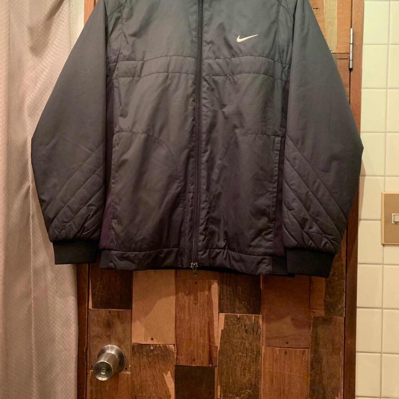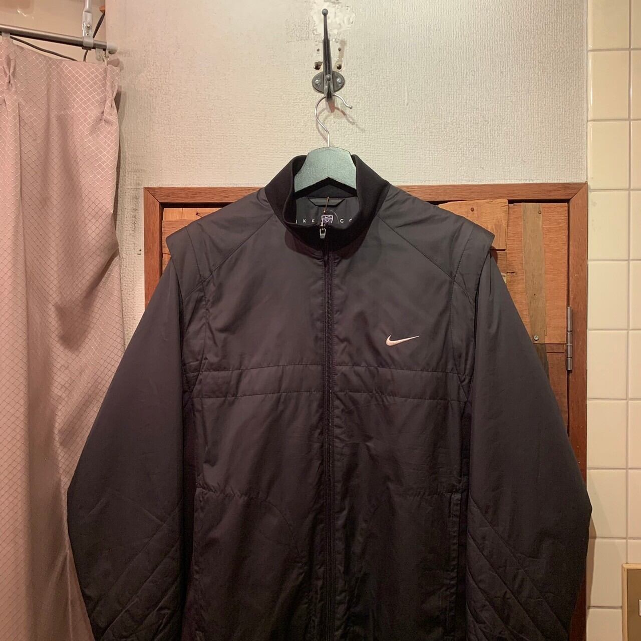 “NIKE GOLF” black polyester design zip-up 2way jacket