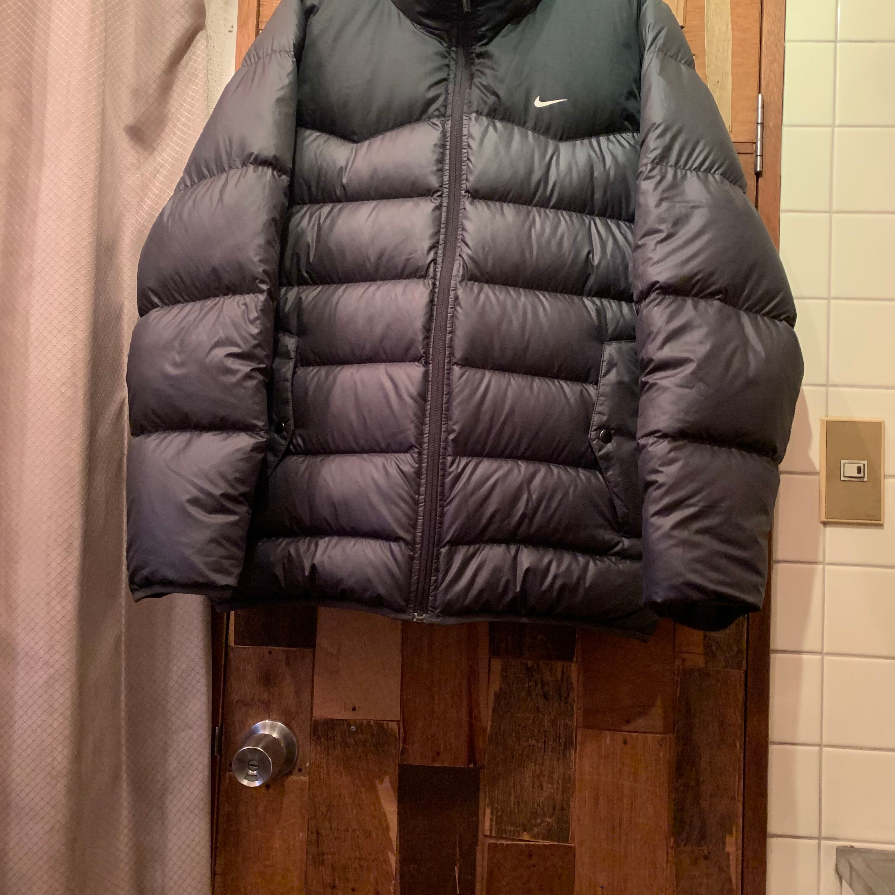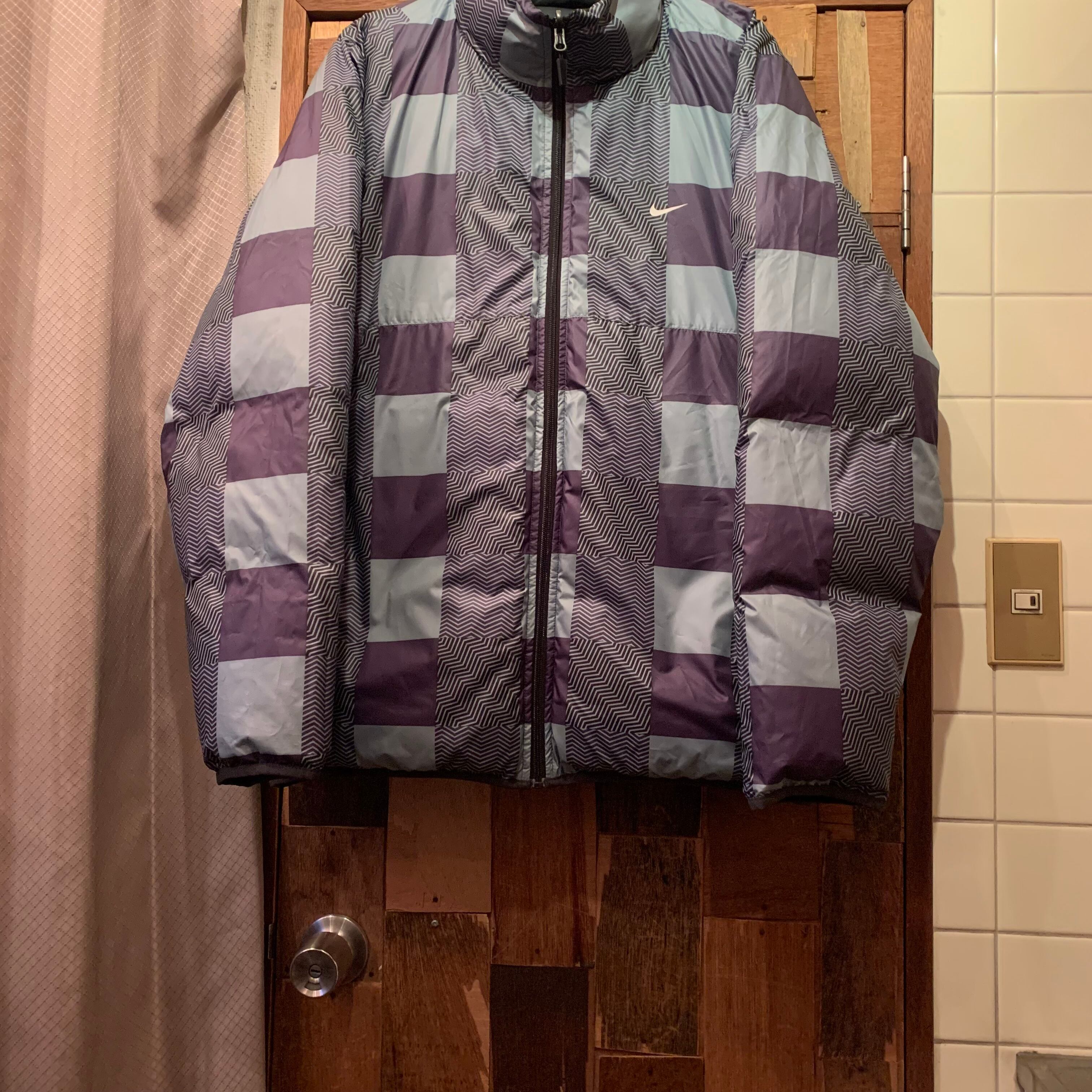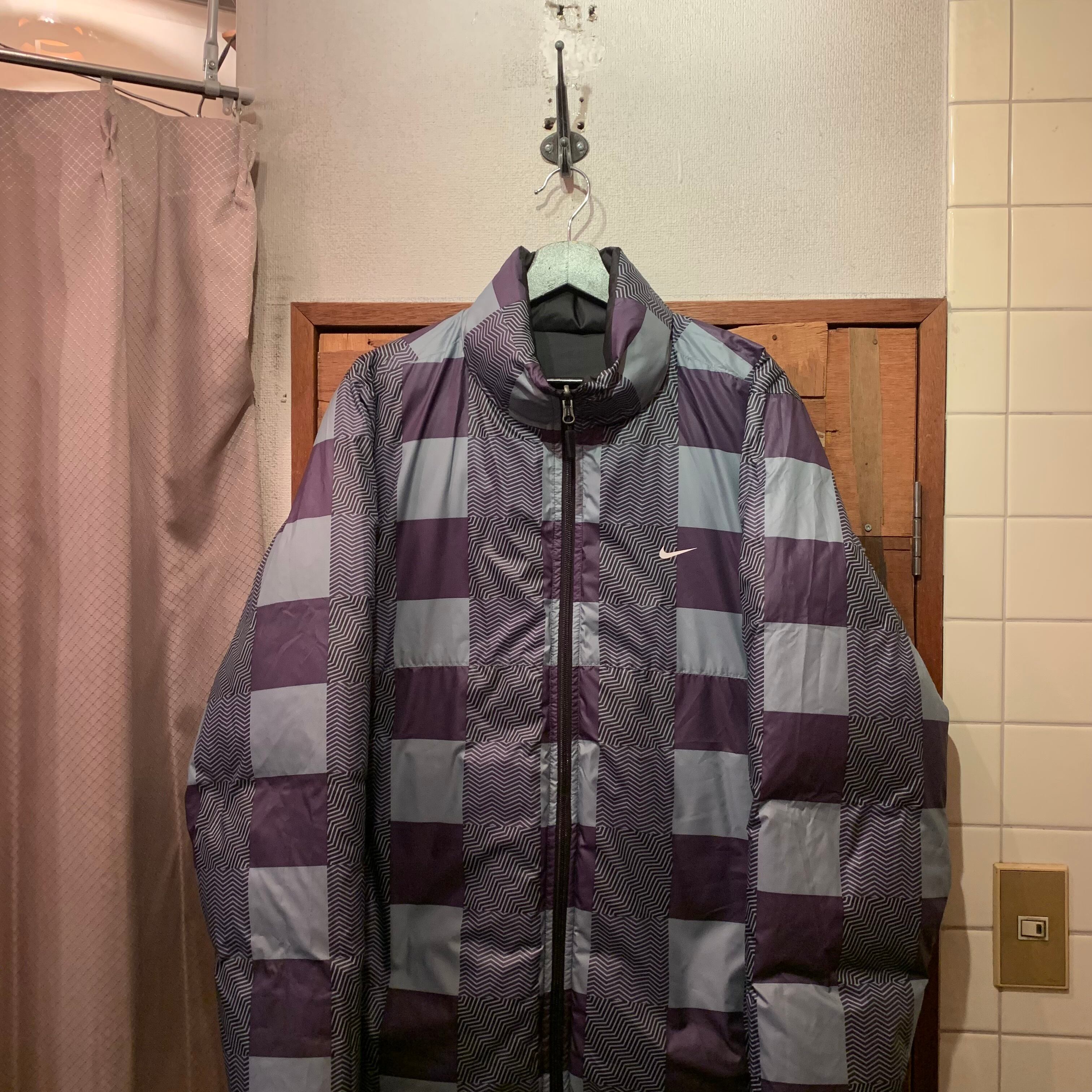“NIKE” 00’s light blue×black polyester unique pattern reversible down jacket