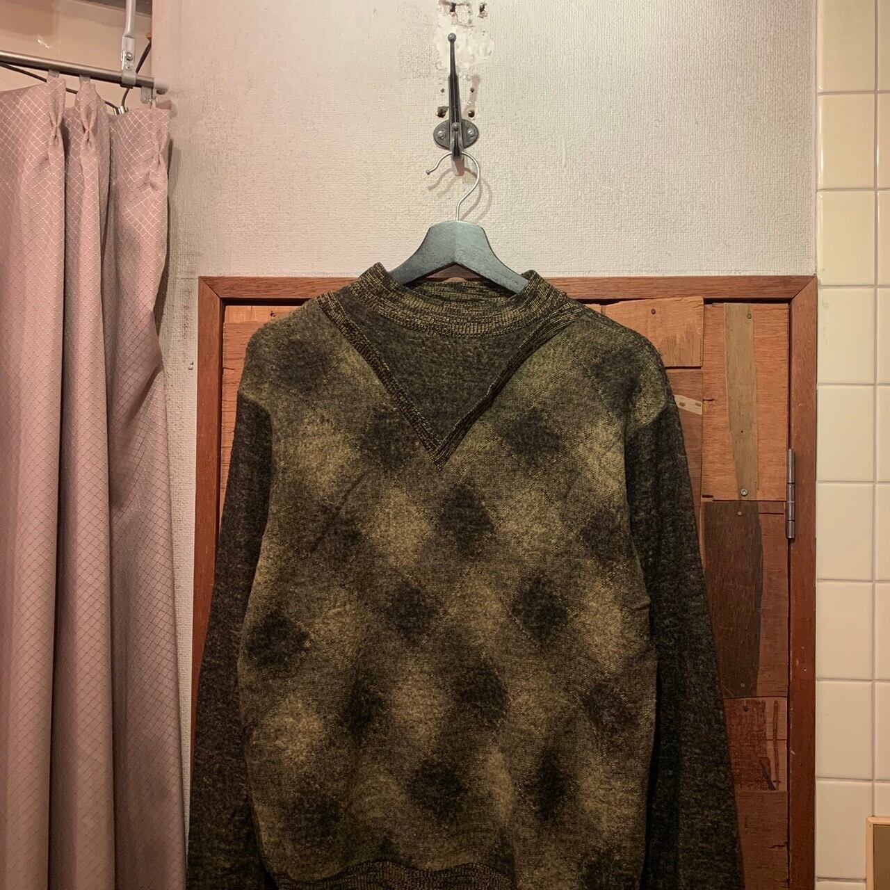 “Haband co” 60’s~ lemon tellou×black check fake layord sweater