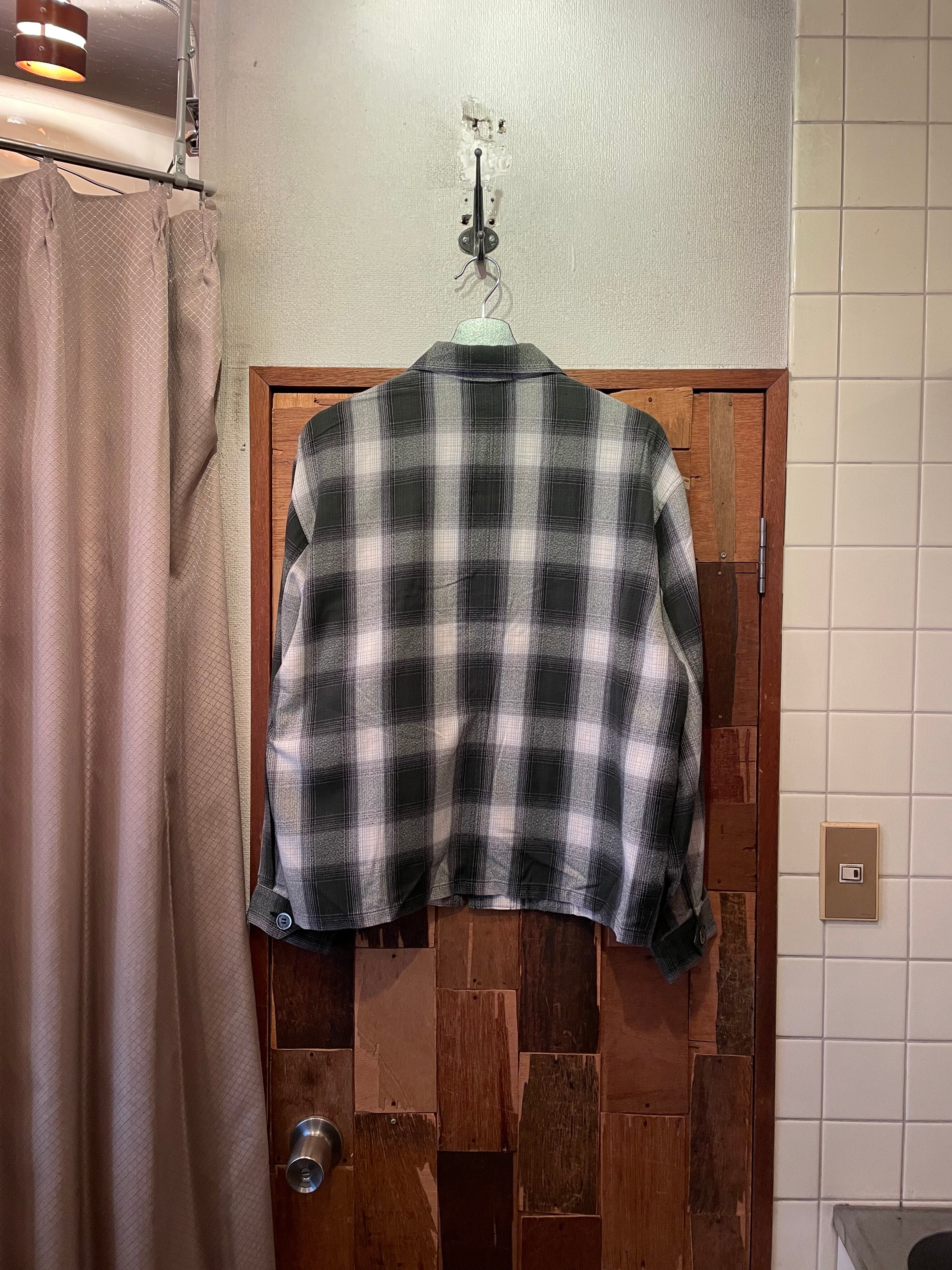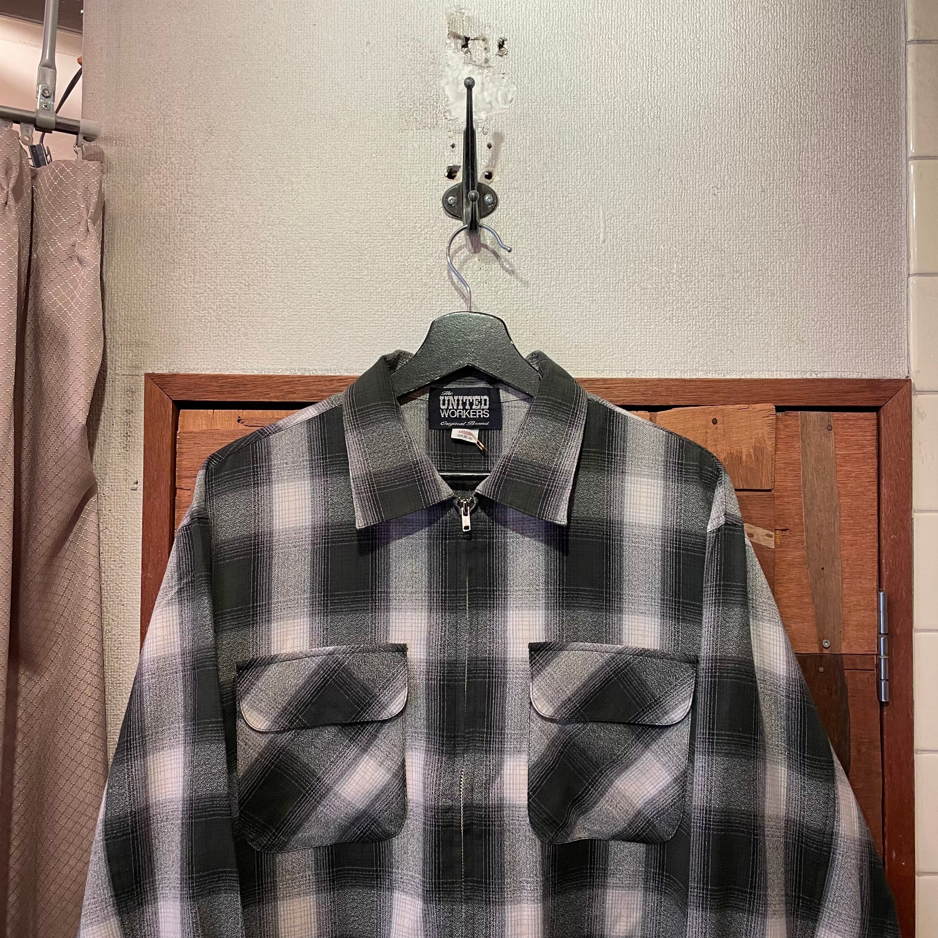 “THE UNITED WORKERS” check pattern cotton zip-up shirt jacket