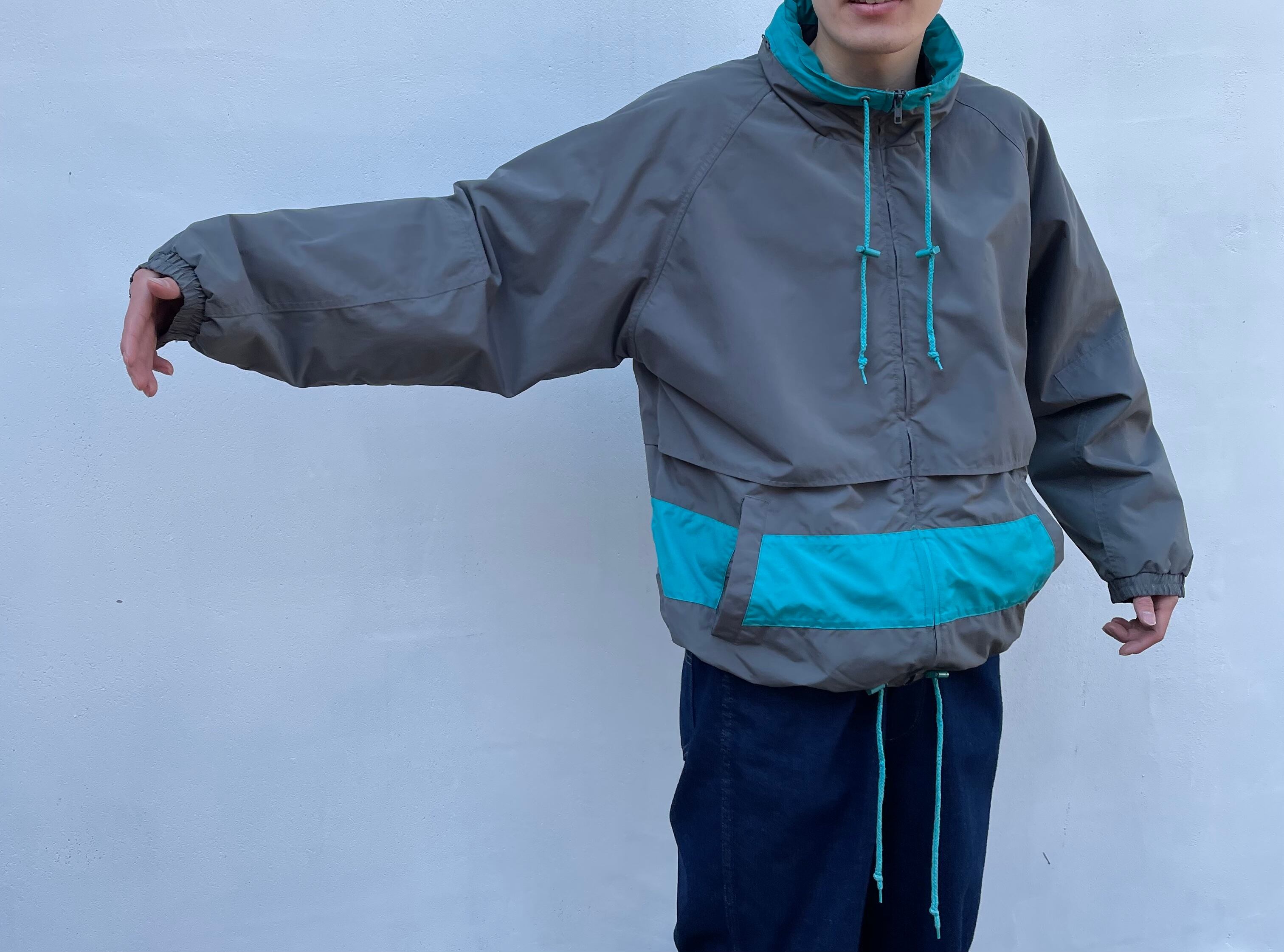 “Eddie Bauer” ~90’s gray×light blue nylon design blouson