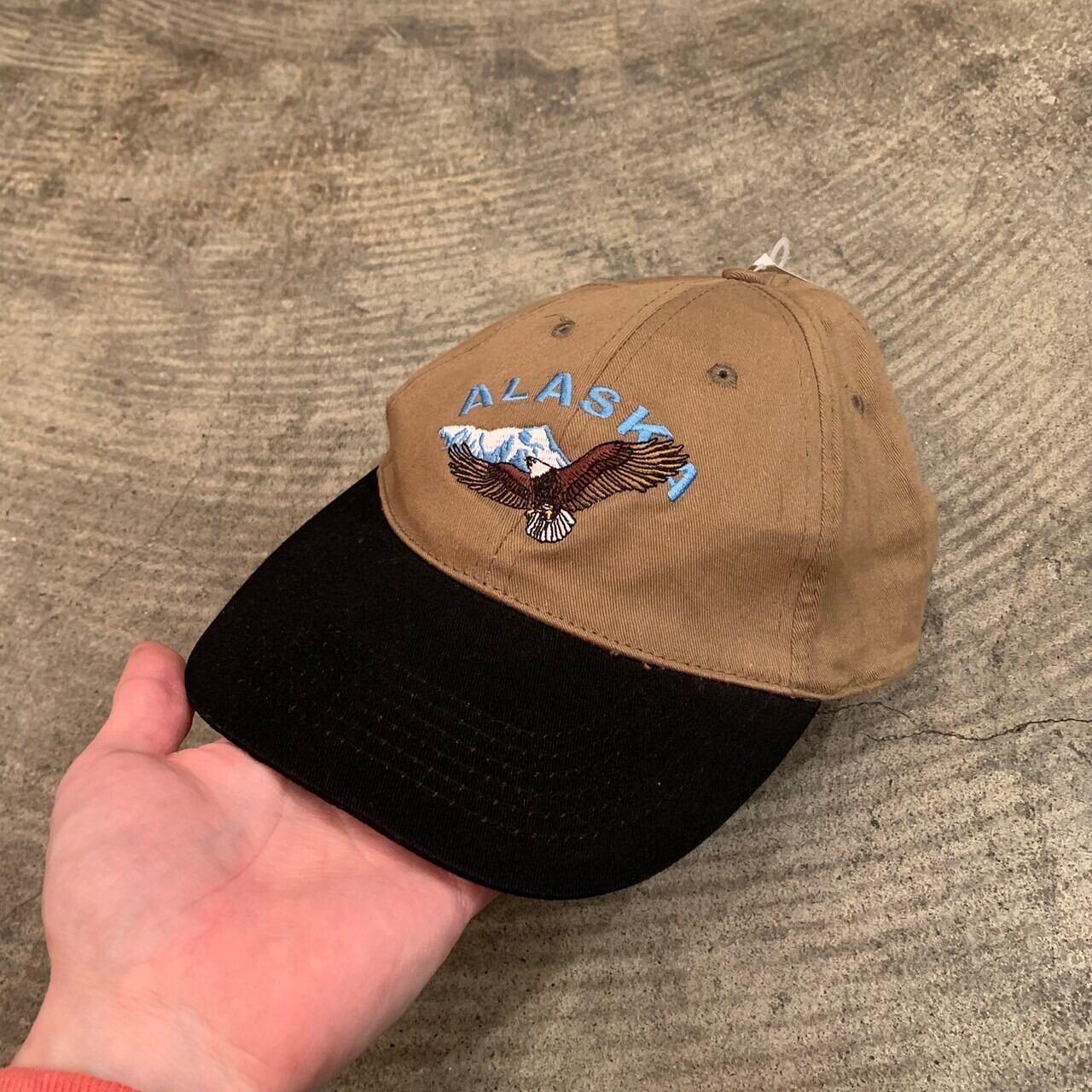 “ALASKA” brown×black cotton embroidery design cap