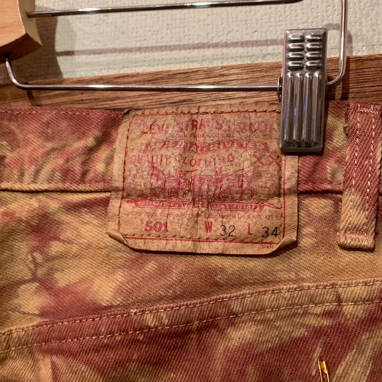 “Levi’s” 05’s 501 pink base cotton tiedye design denim pants made in U.S.A