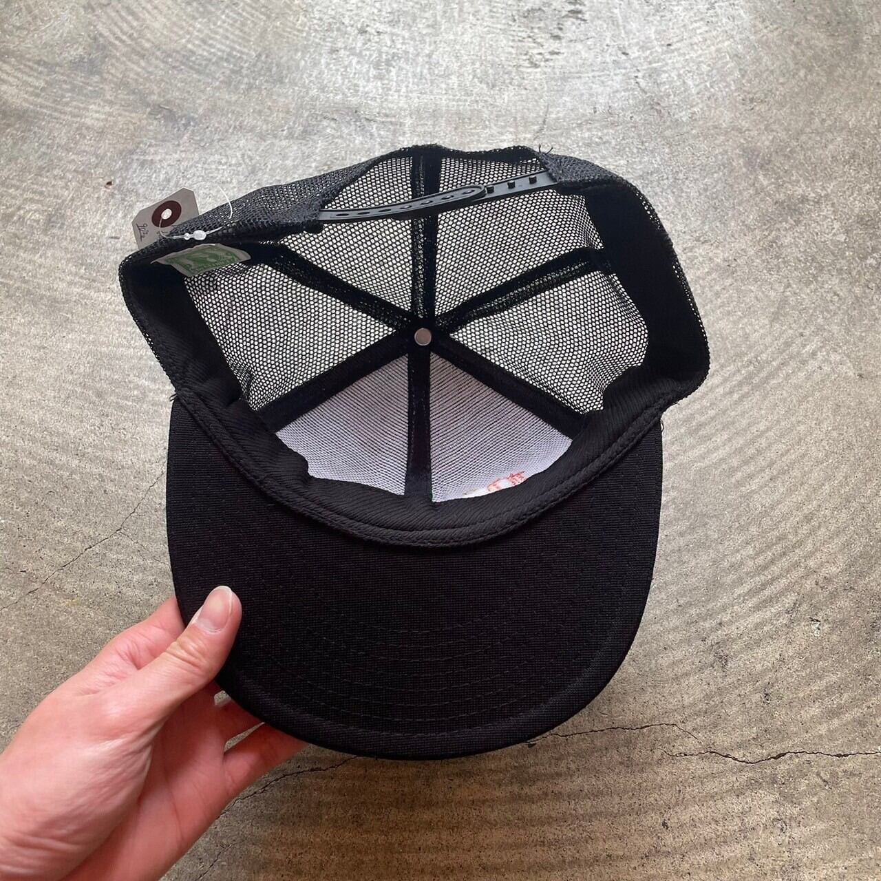 “QUALITYCAPS” 90's black embroidery design mesh cap