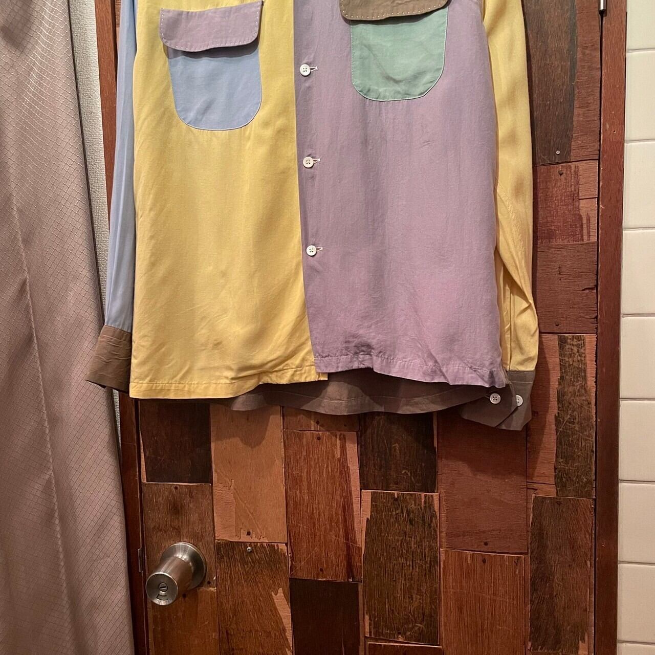 “Dry Bones” mulch color base rayon crazy pattern L/S open-collar shirt