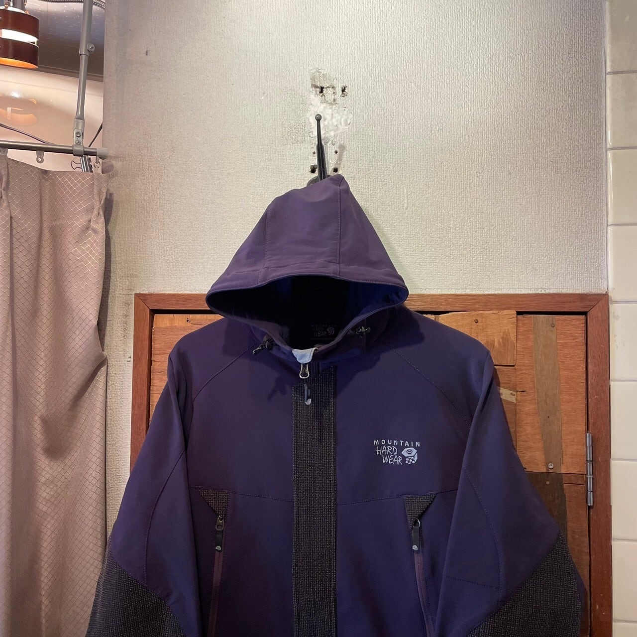 “mountain hardwear" purple nylon base soft shell hooded jacket