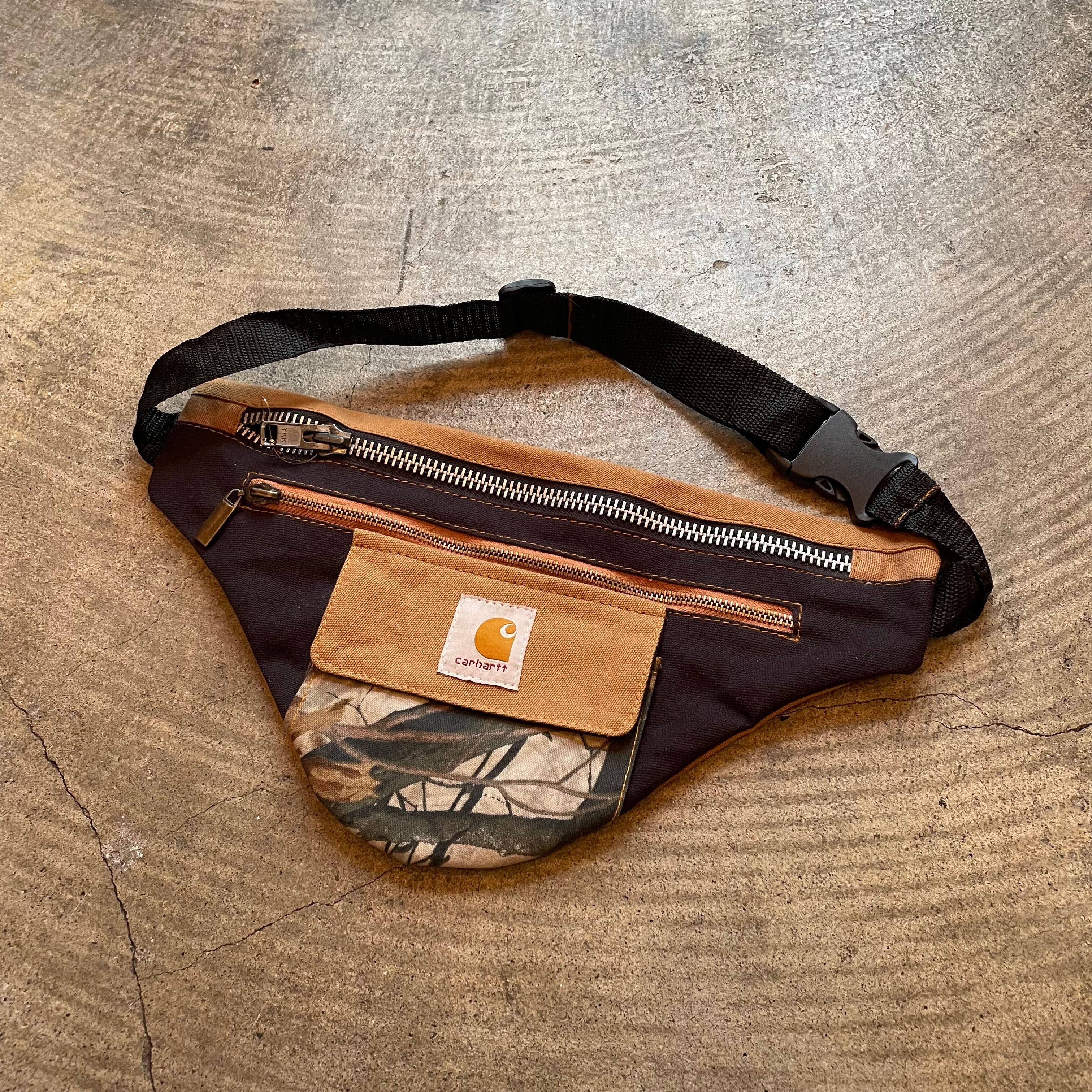 “Carhartt” black×beige cotton real tree camo waist pouch