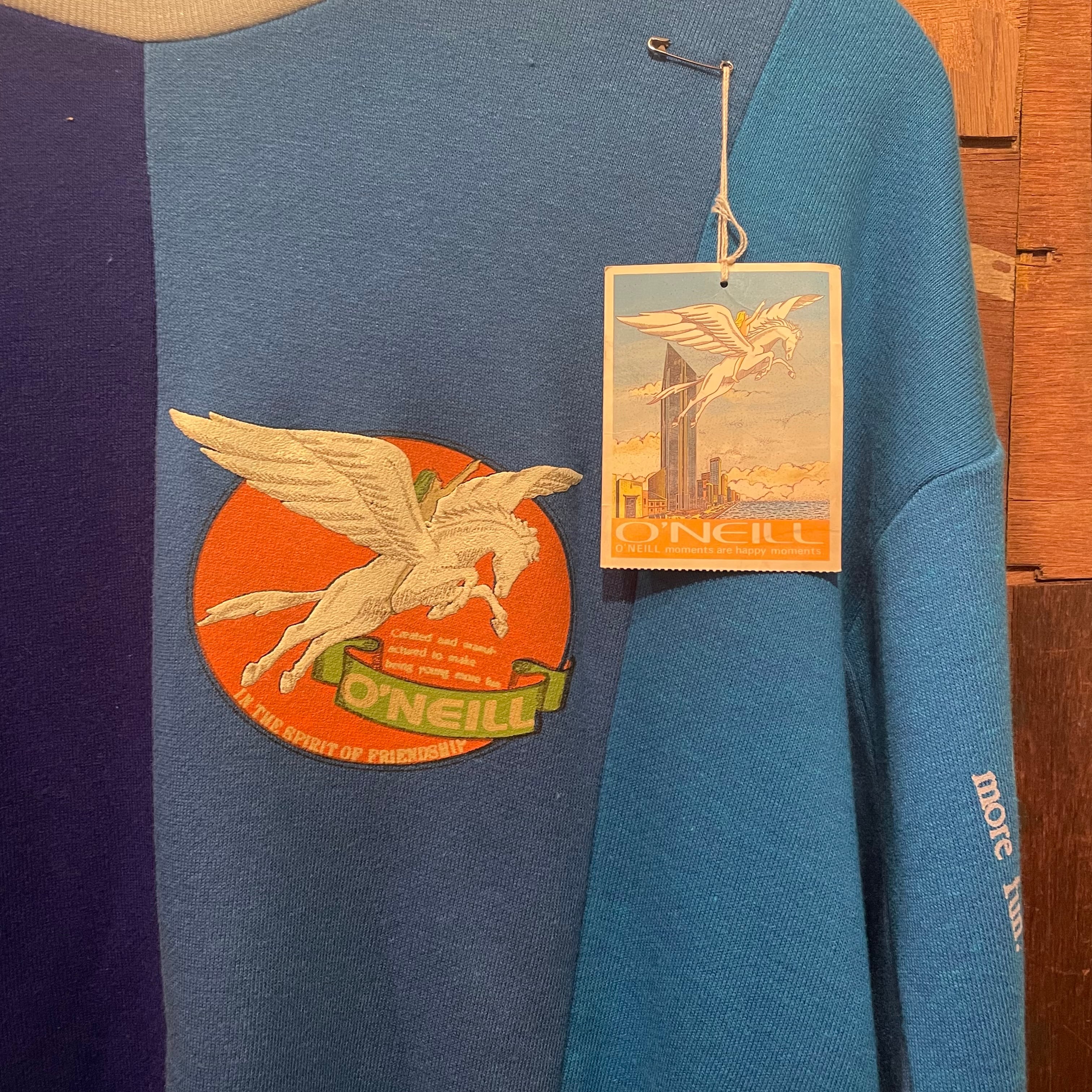 “O’NEILL” 80’s dead stock!! navy×blue×light blue cotton/acrylic design sweat