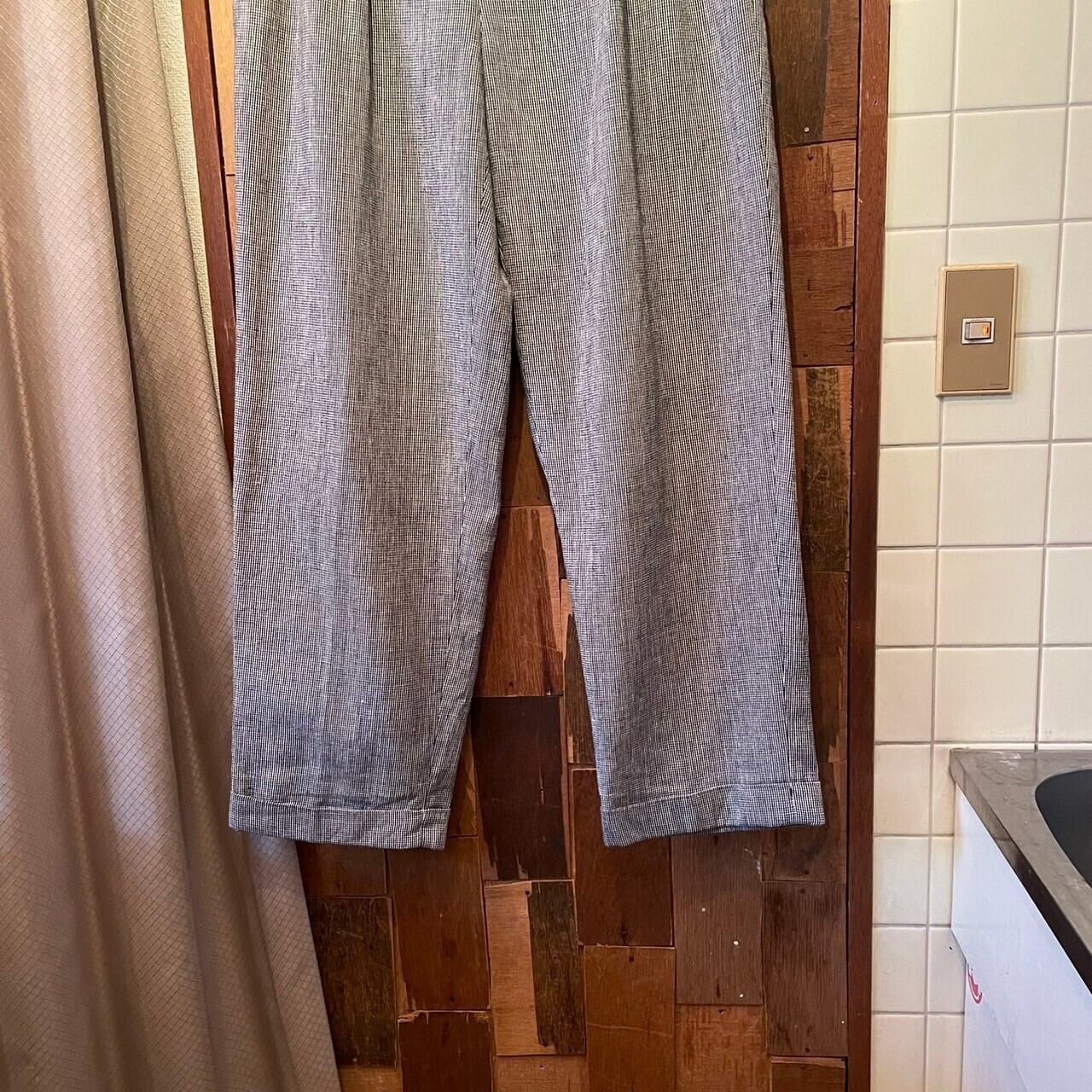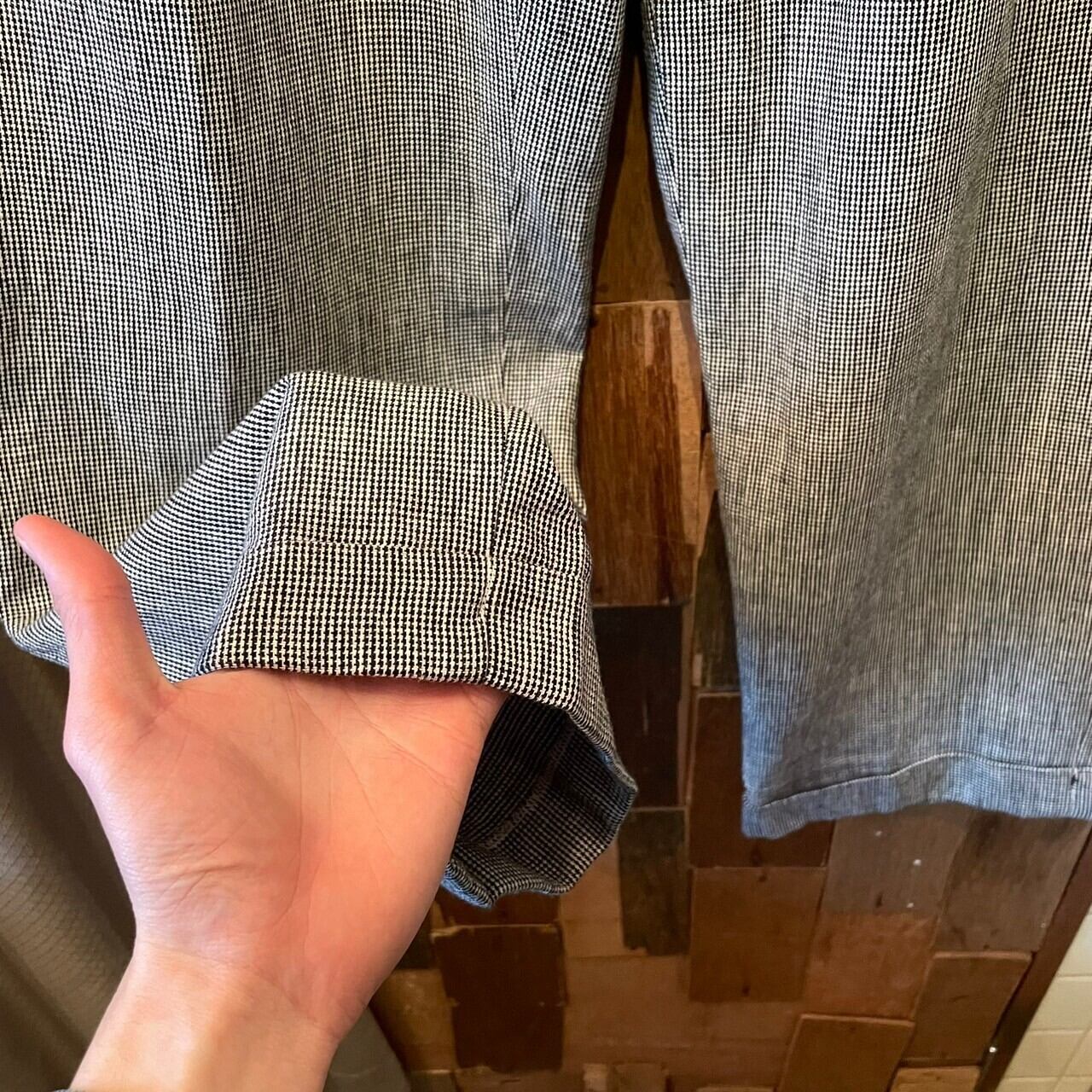 “Polo by Ralph Lauren" 90's black×white linen/cotton handstooth pattern slacks