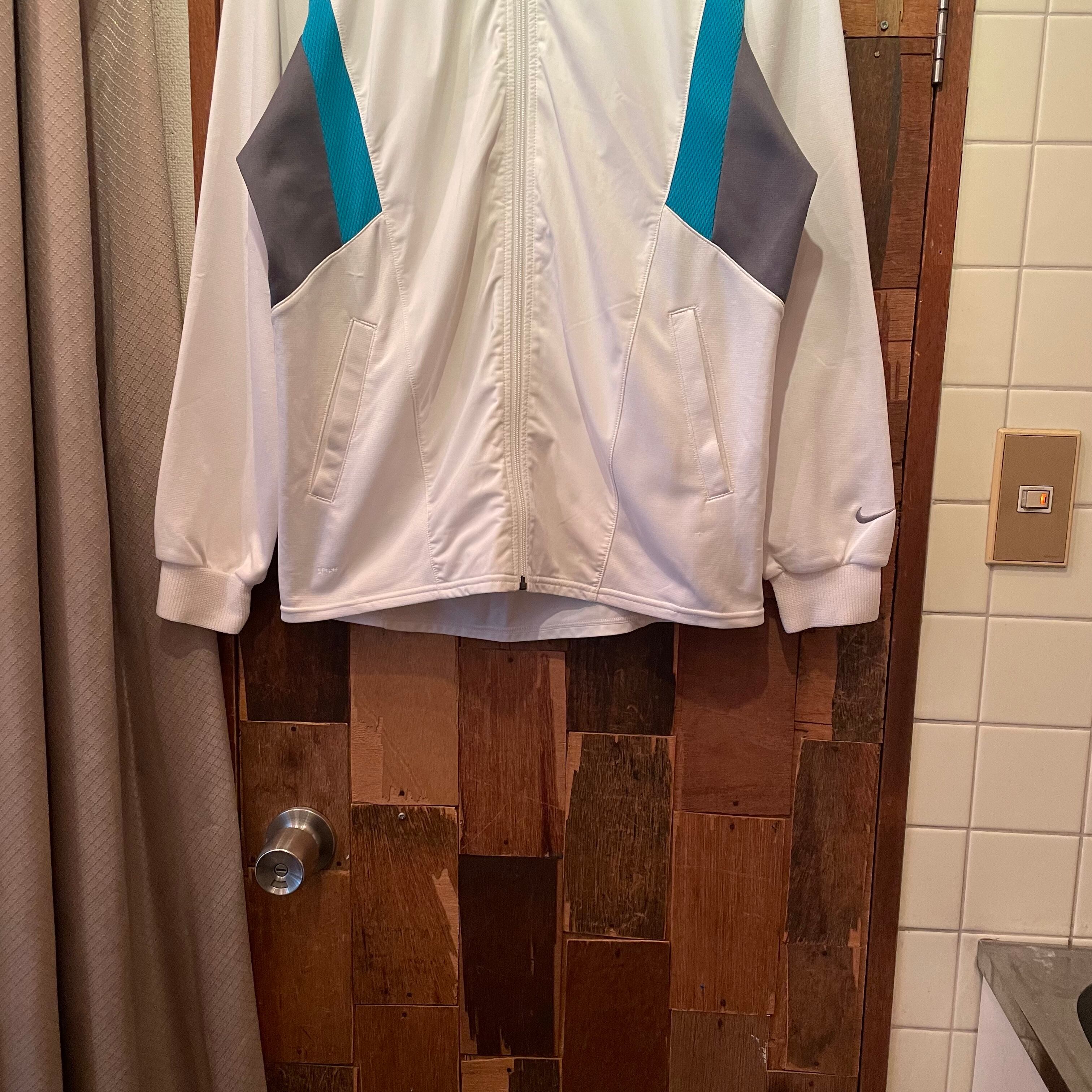 “NIKE” 「DRI-FIT」 white× blue×gray polyester zip-up jacket