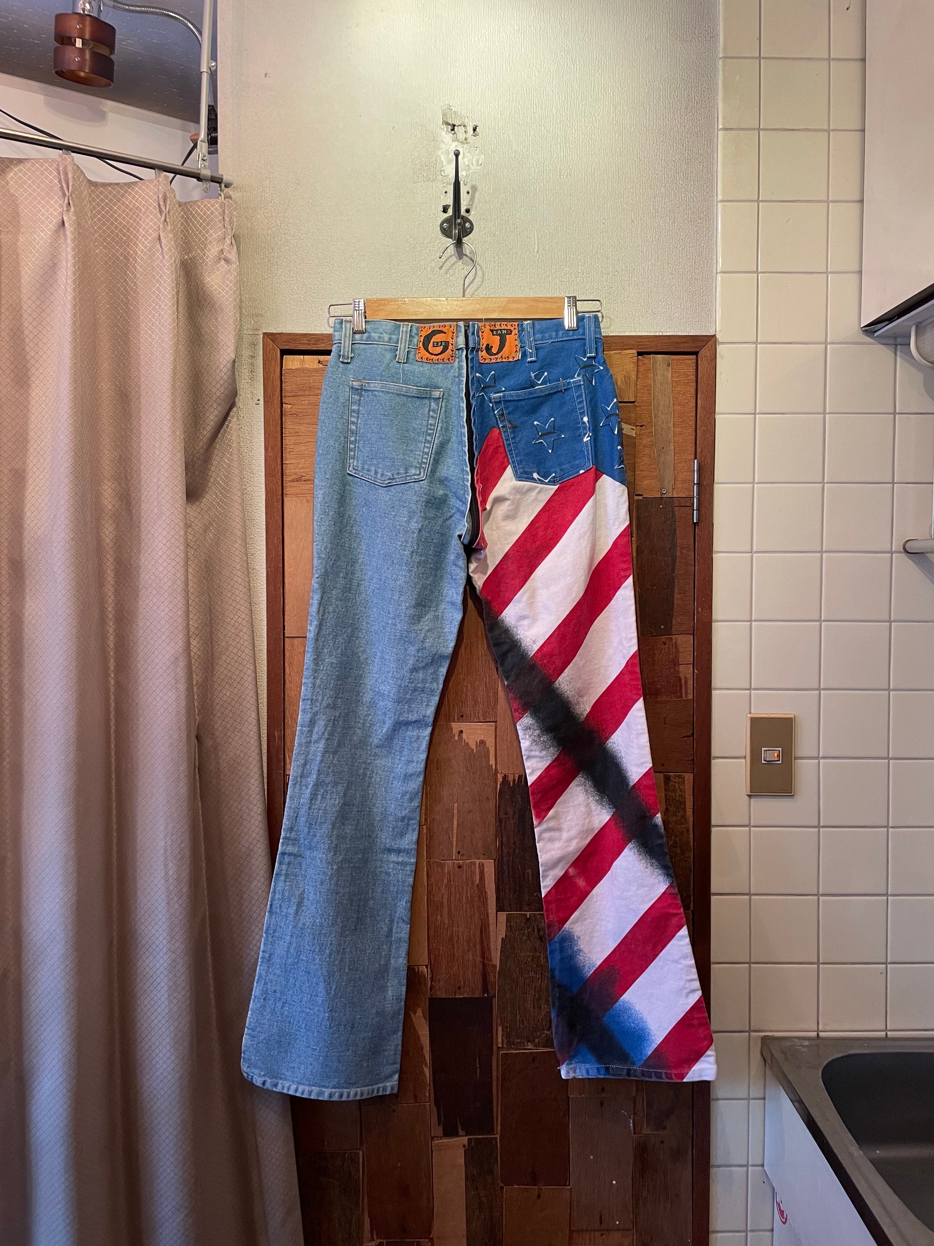 “G,Y,P,S,Y JEANS” indigo×blue×red×white design denim pants made in U.S.A
