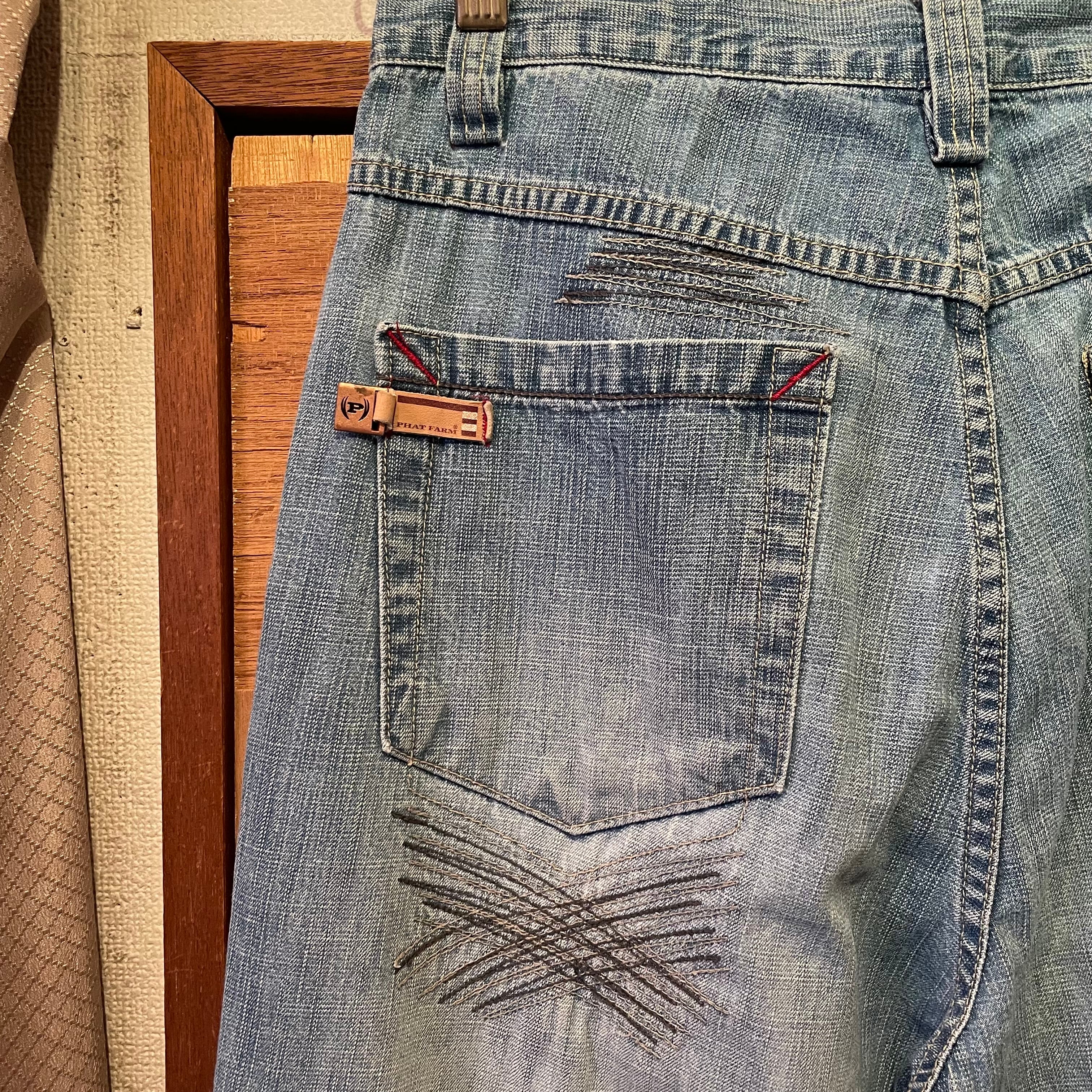 “PHAT FARM” 90’s indigo cotton design denim pants