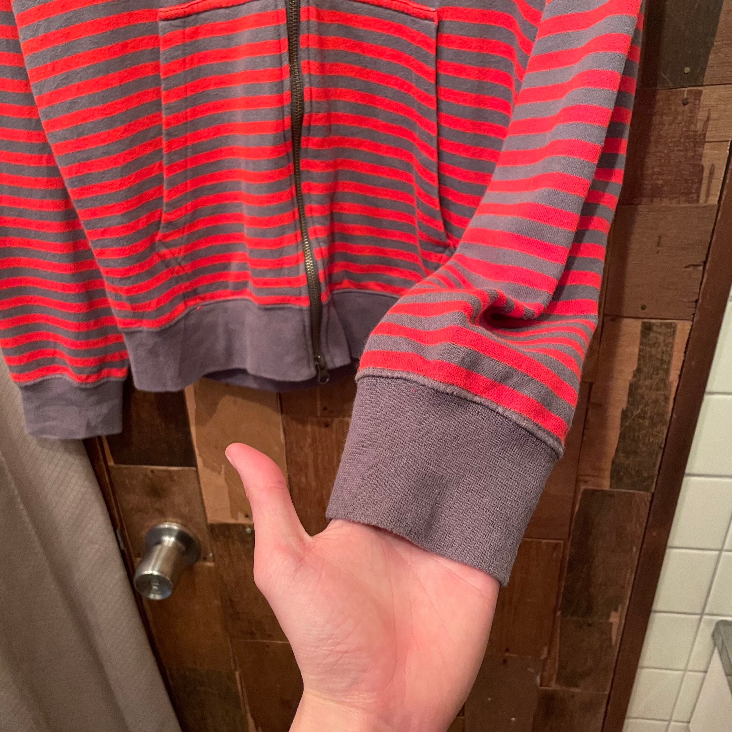 “NIKE” 2012 red×charcoal cotton border design double zip-up hoodie