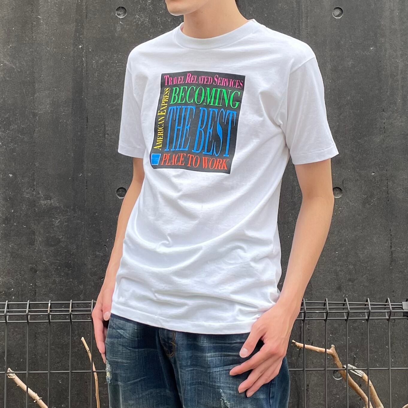 “Hanes” 90’s white cotton/poly printed S/S Tee made in U.S.A