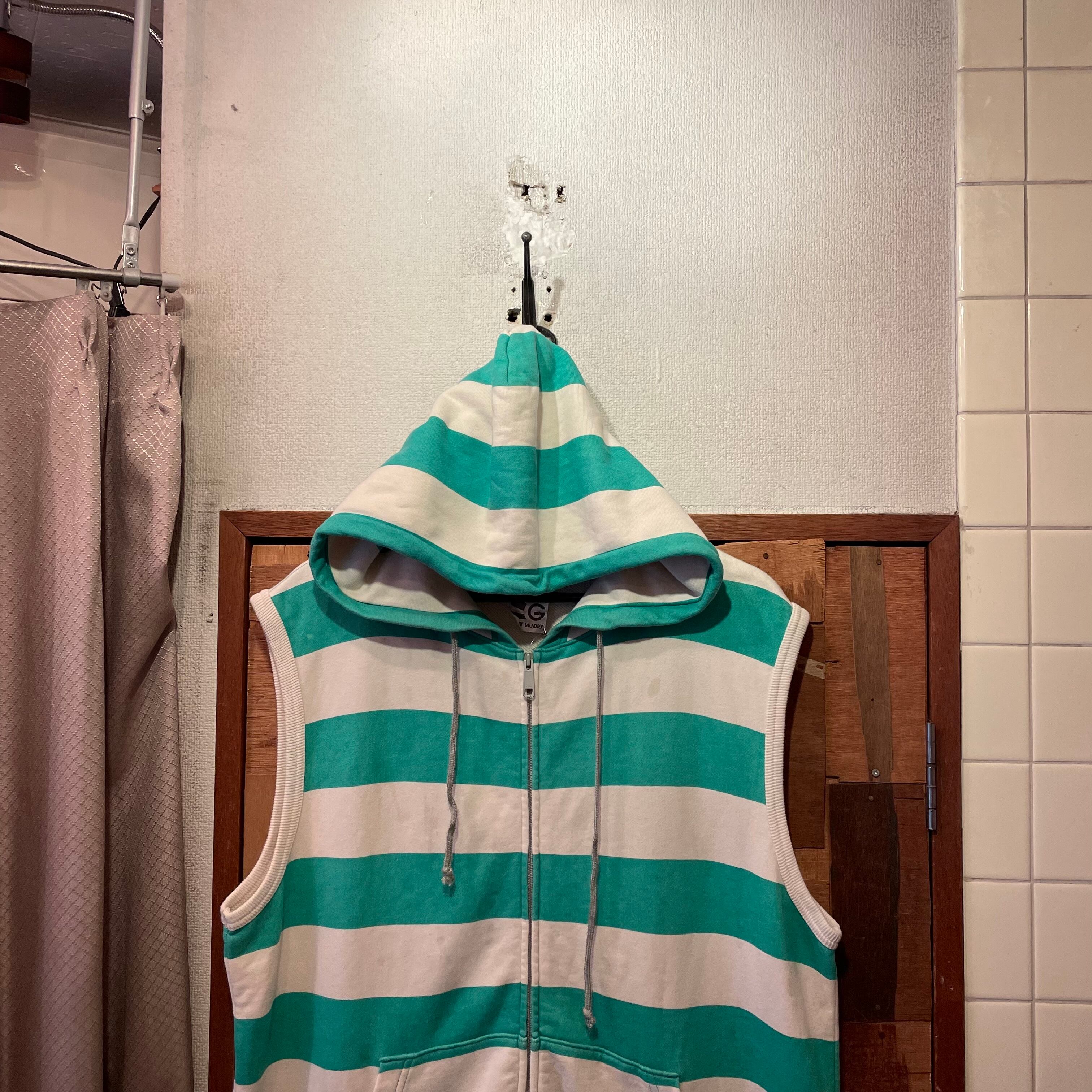 “GREAT LAUNDRY” white×light green border hoodie vest