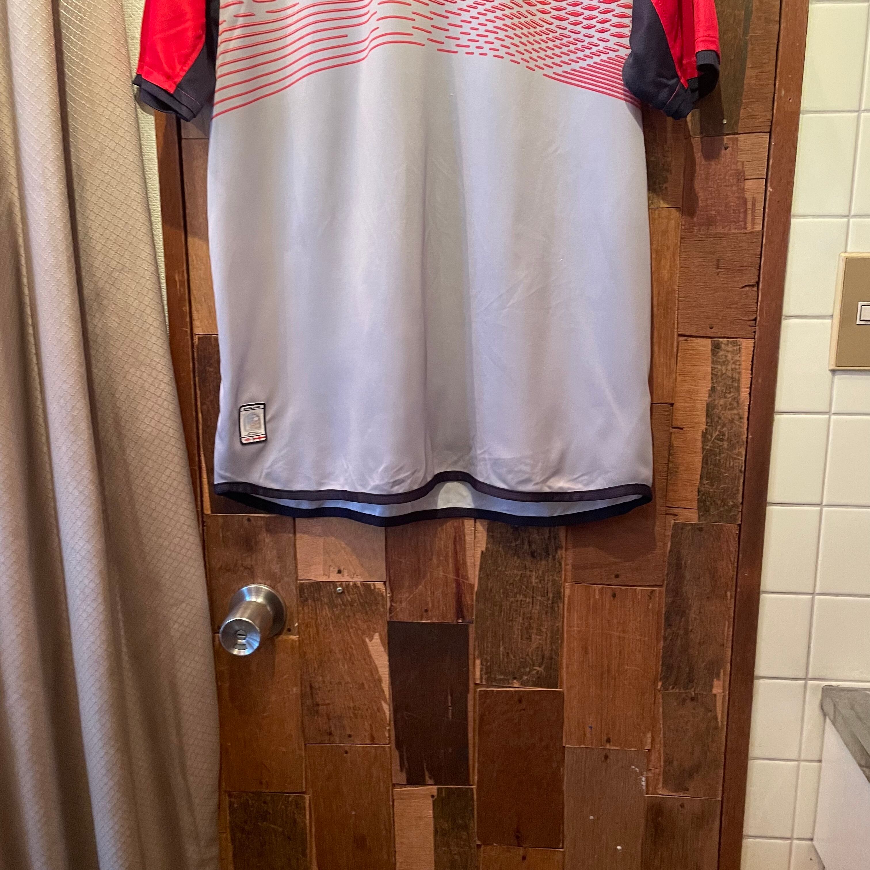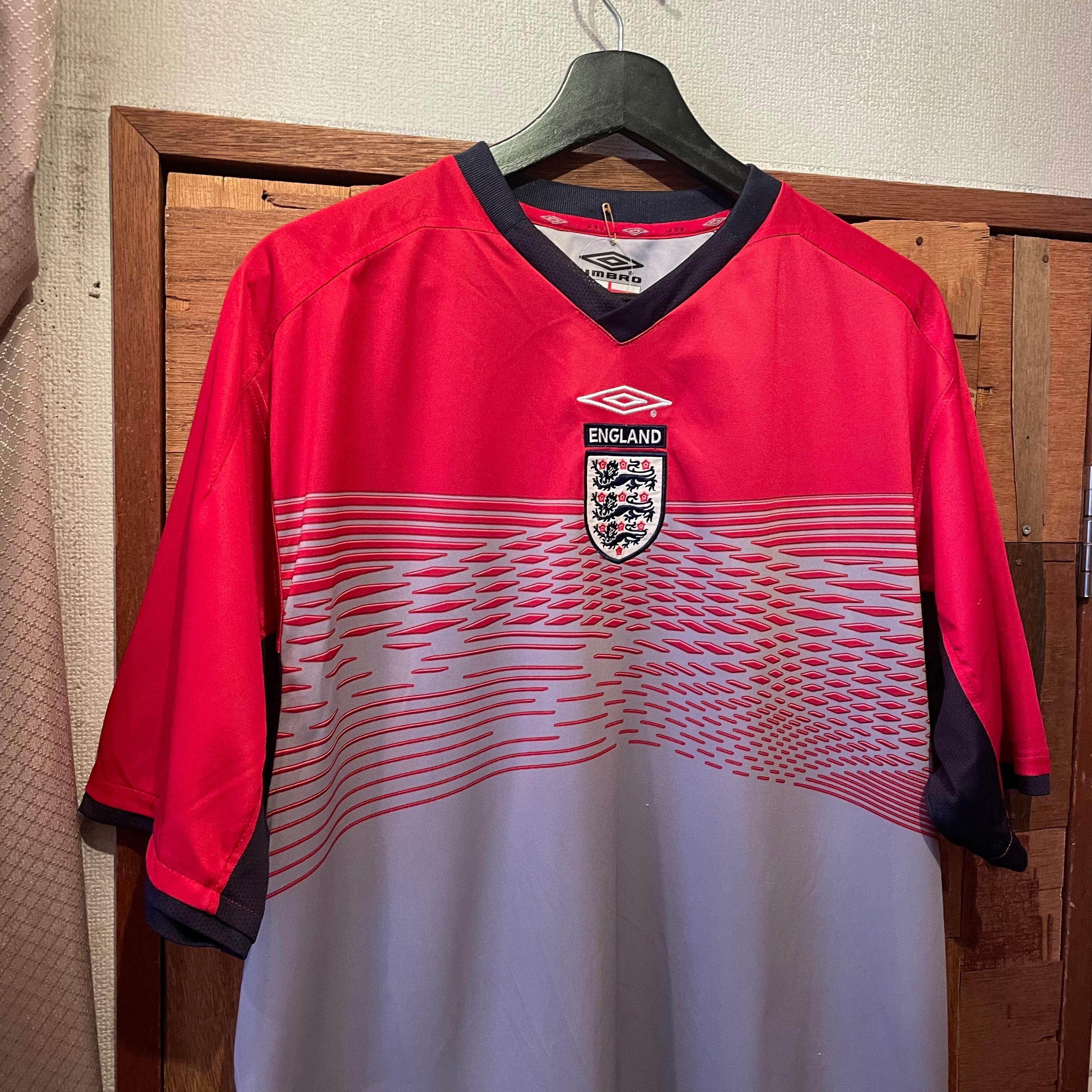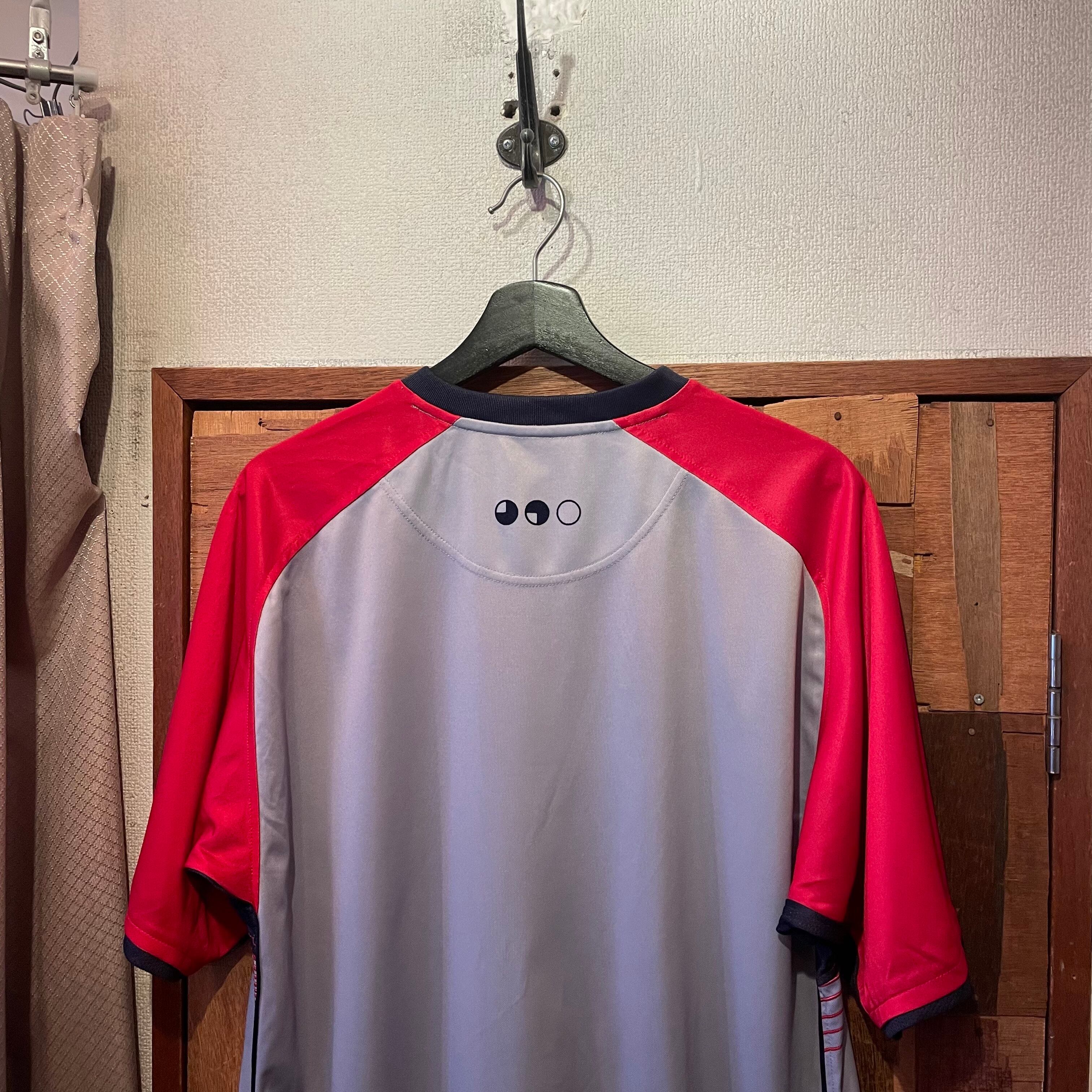 “UMBRO” 00’s 「イングランド」 red×gray×navy polyester design S/S Tee