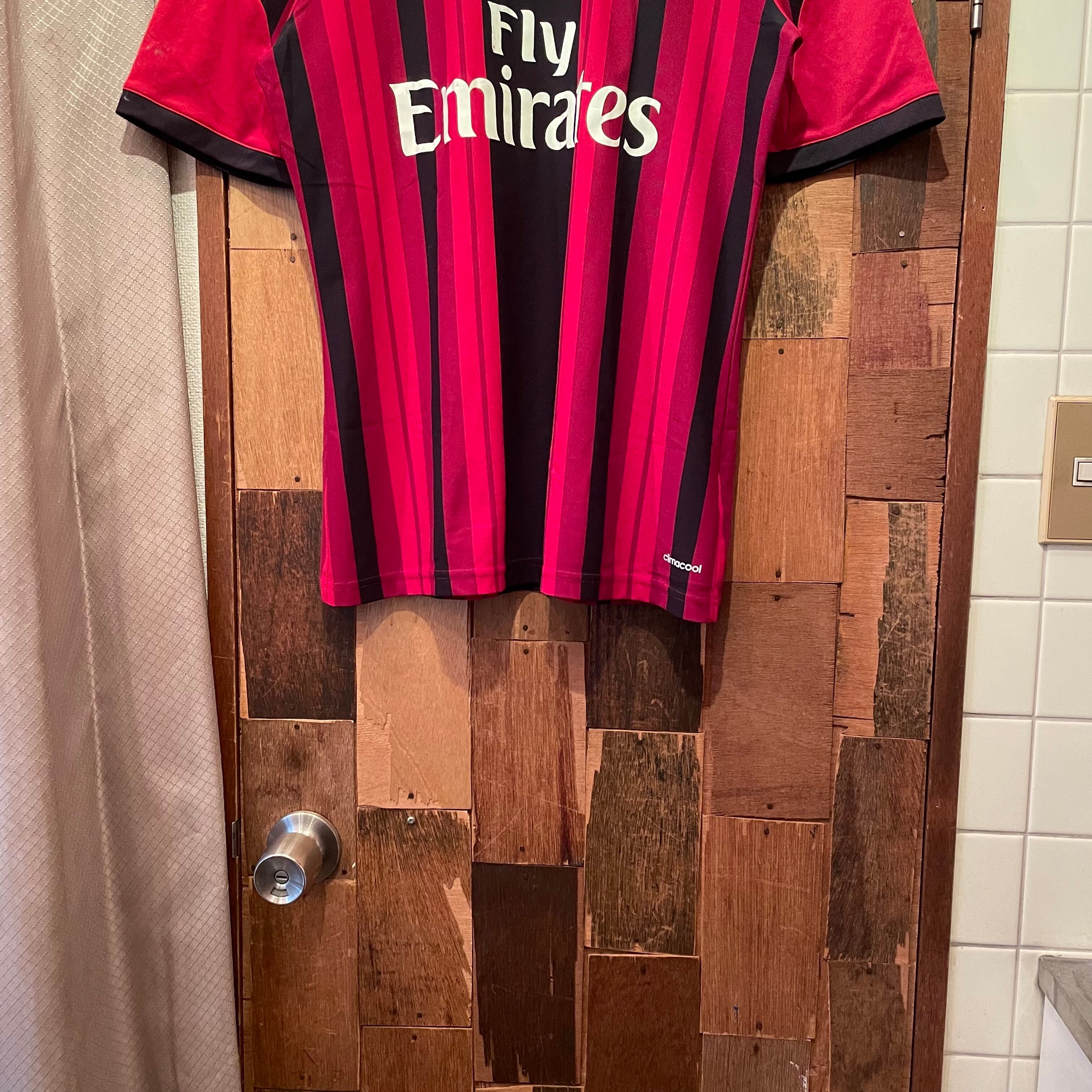 “adidas” 2014!! red×black×white polyester design henry neck S/S Tee