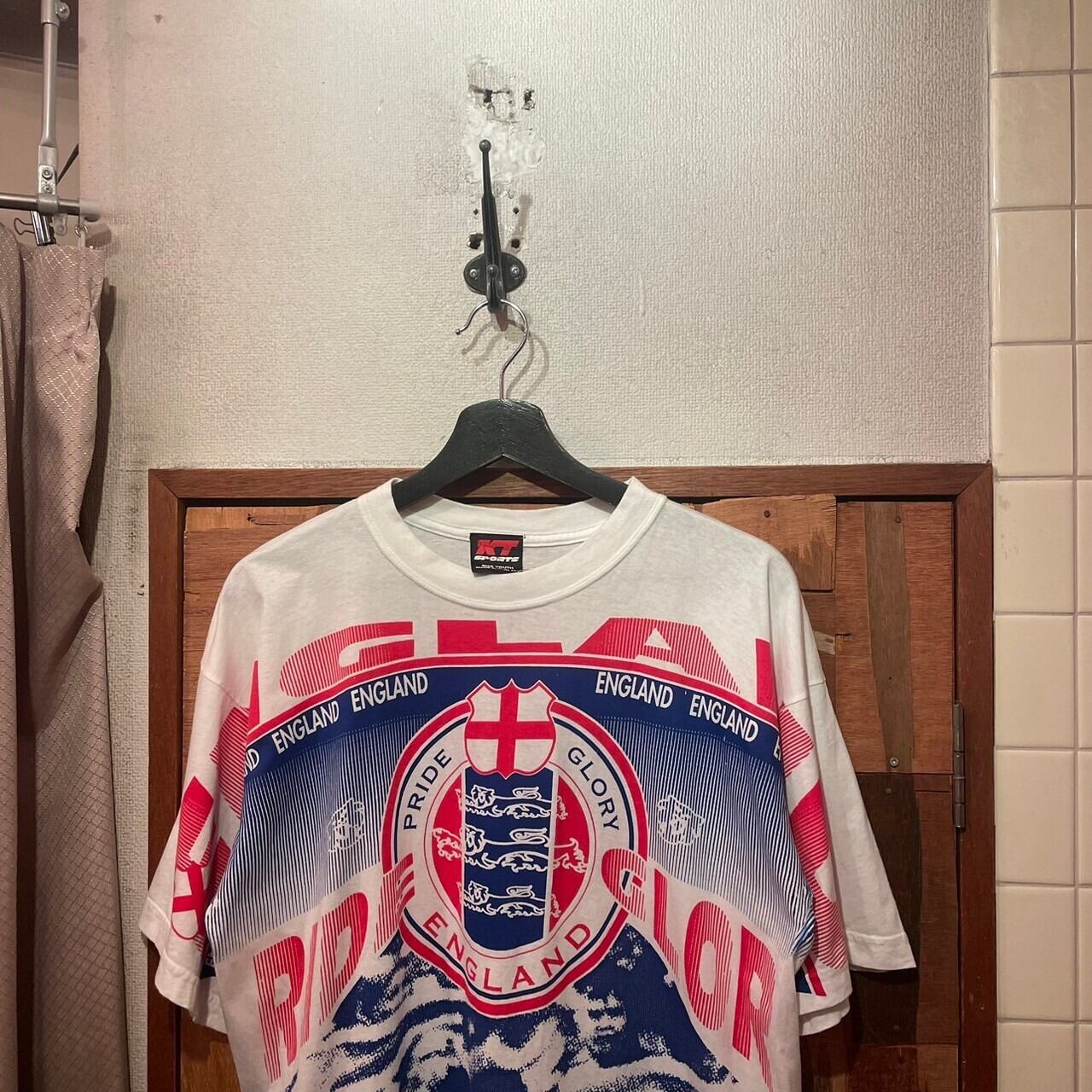 “KT sports” 90's white×red×blue cotton/poly printed S/S Tee