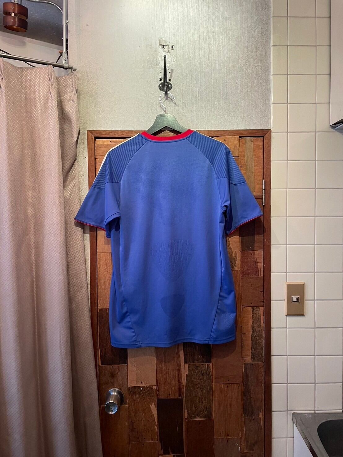 “adidas" 00's blue×white polyester line logo design S/S Tee
