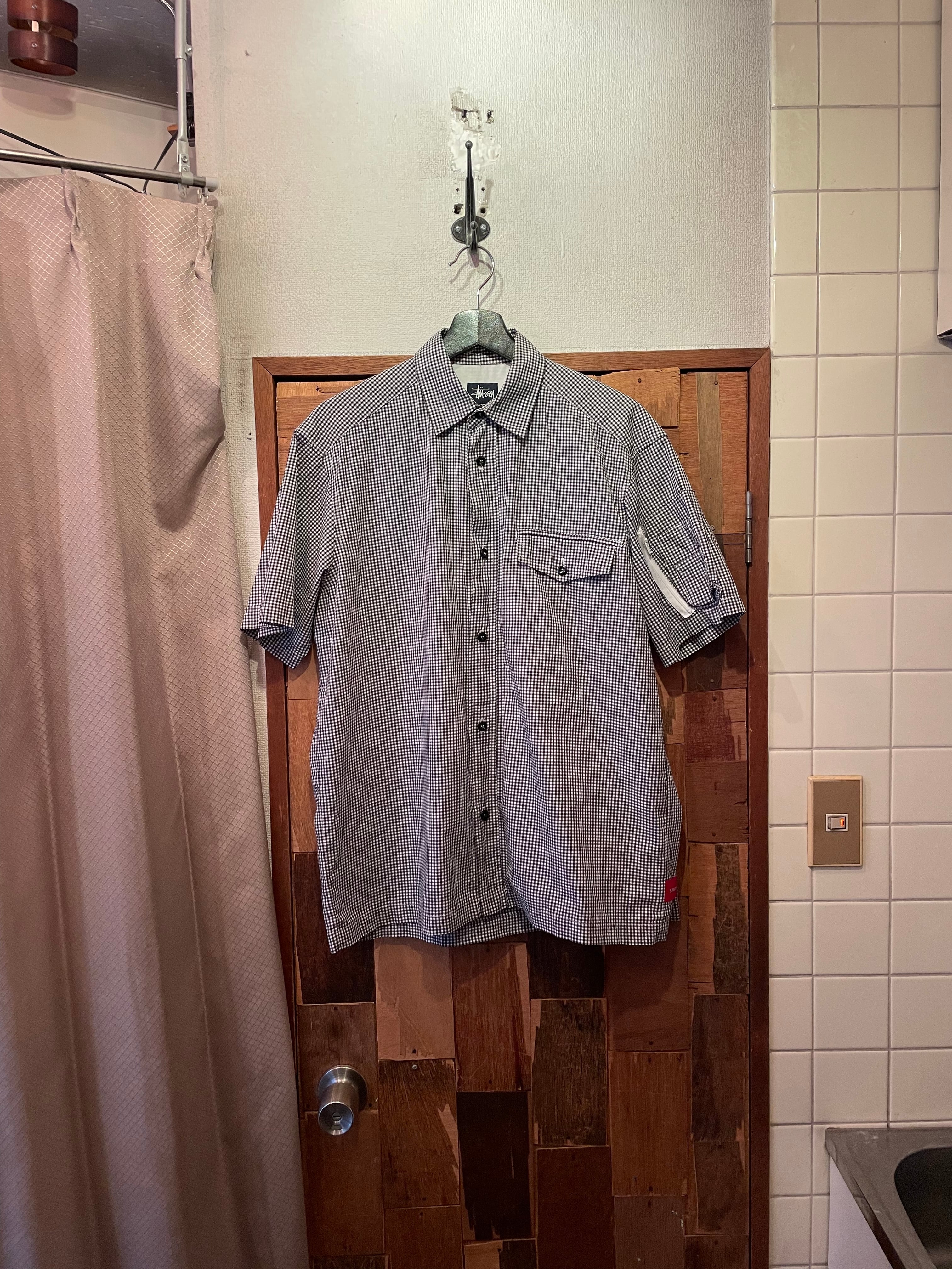 “stussy” 90’s black×white cotton gingham check S/S shirt made in U.S.A