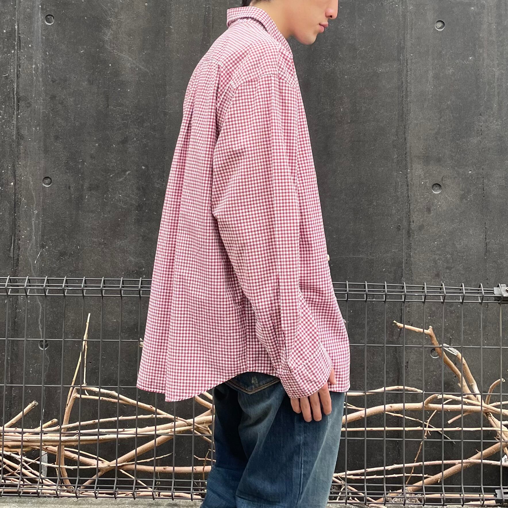 “Abercrombie&Fitch” red×white cotton check B.D L/S shirt