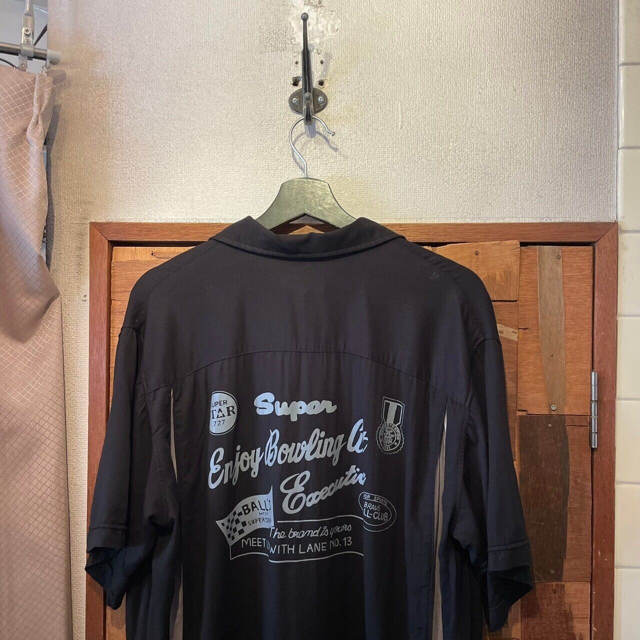 “RIP OFF THIS LABEL” 90’s black×white rayon open collar S/S shirt