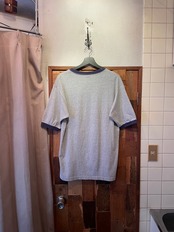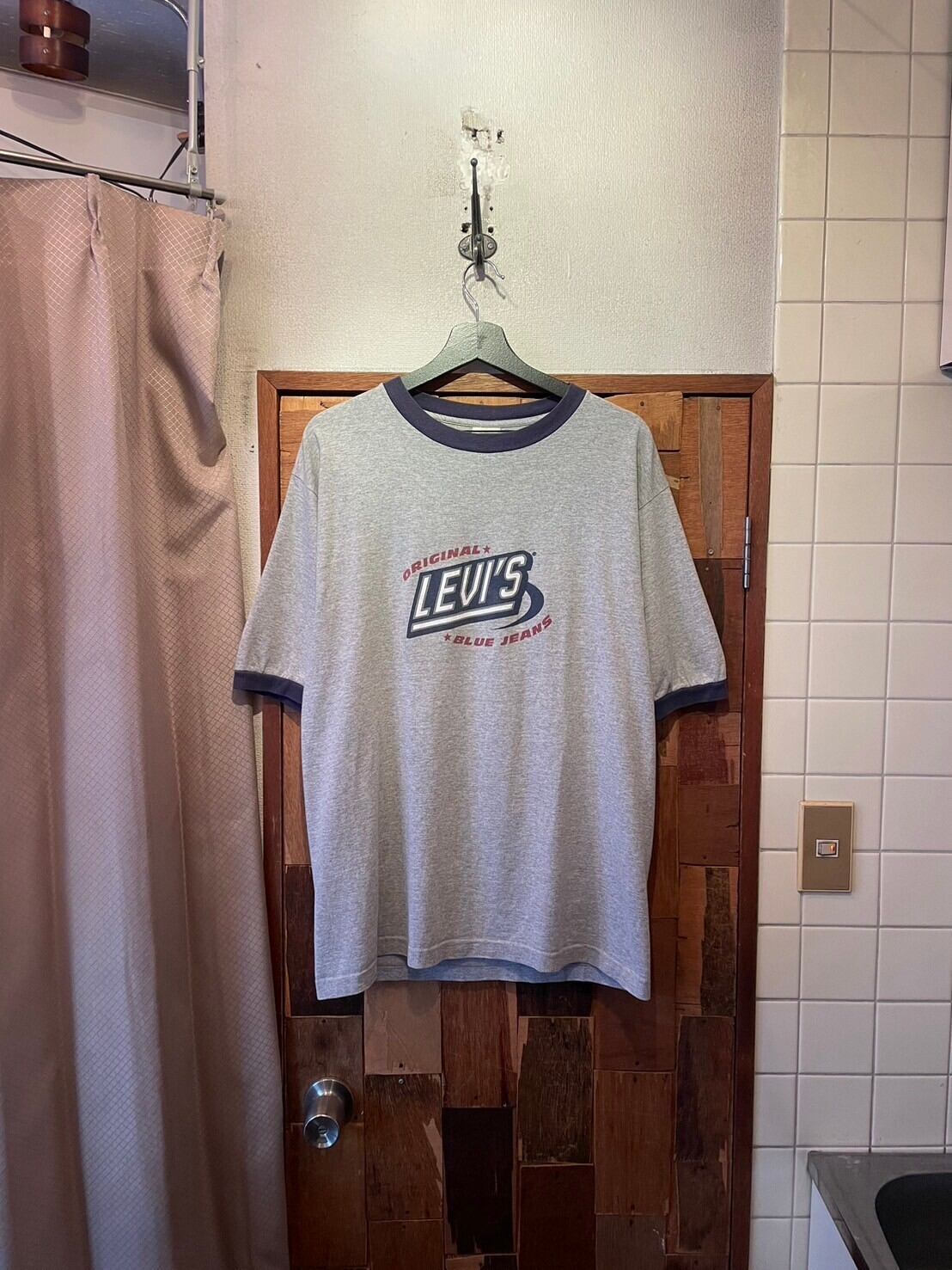 “Levi’s” gray×navy×red cotton printed S/S ringer Tee made in USA
